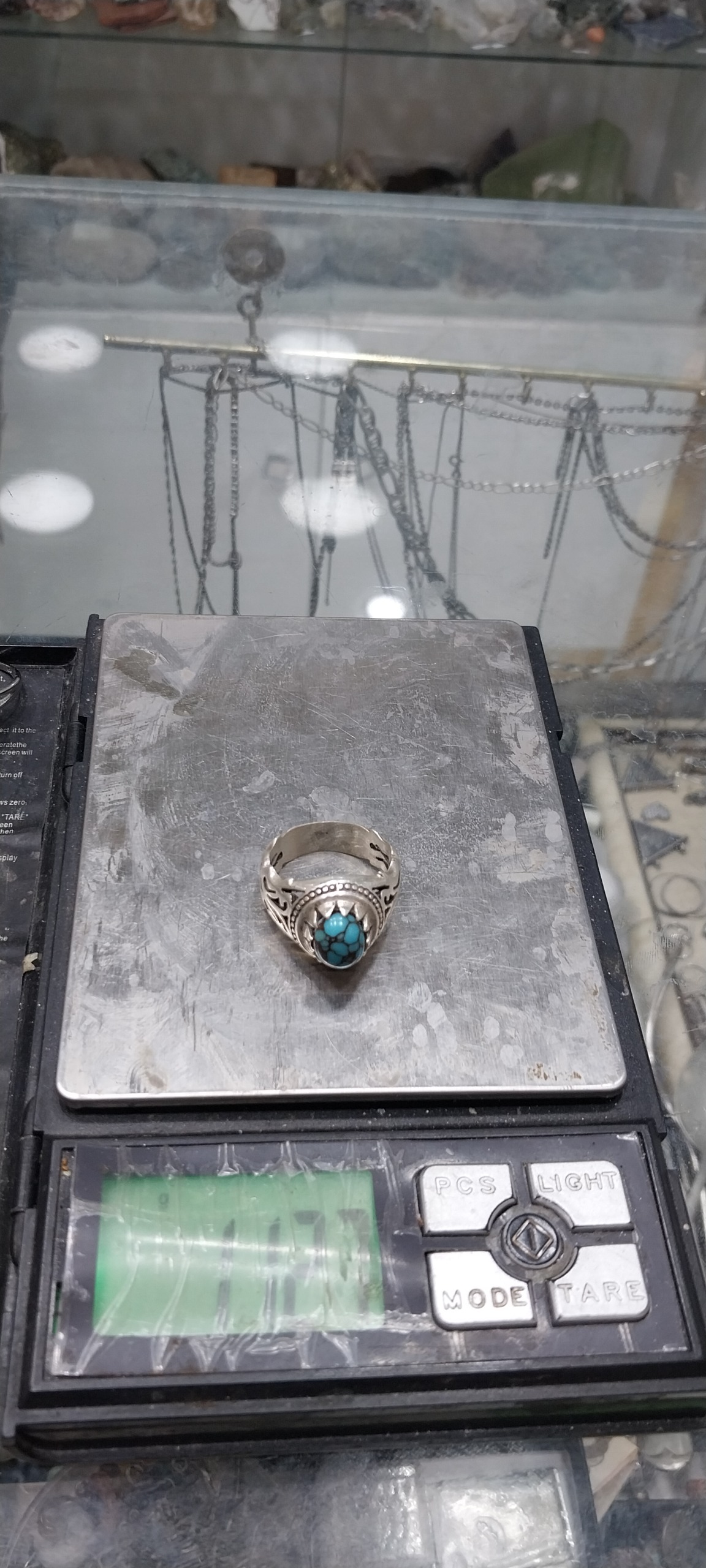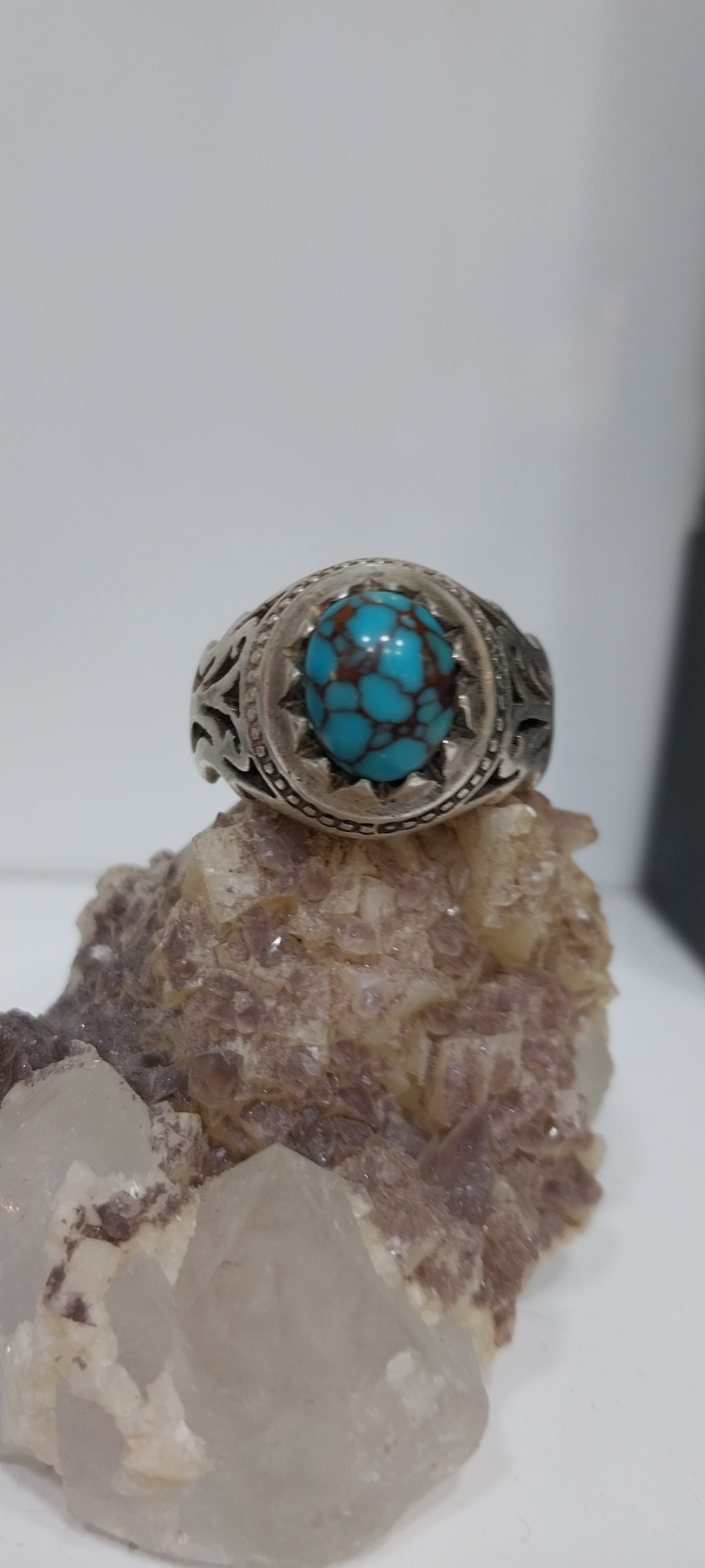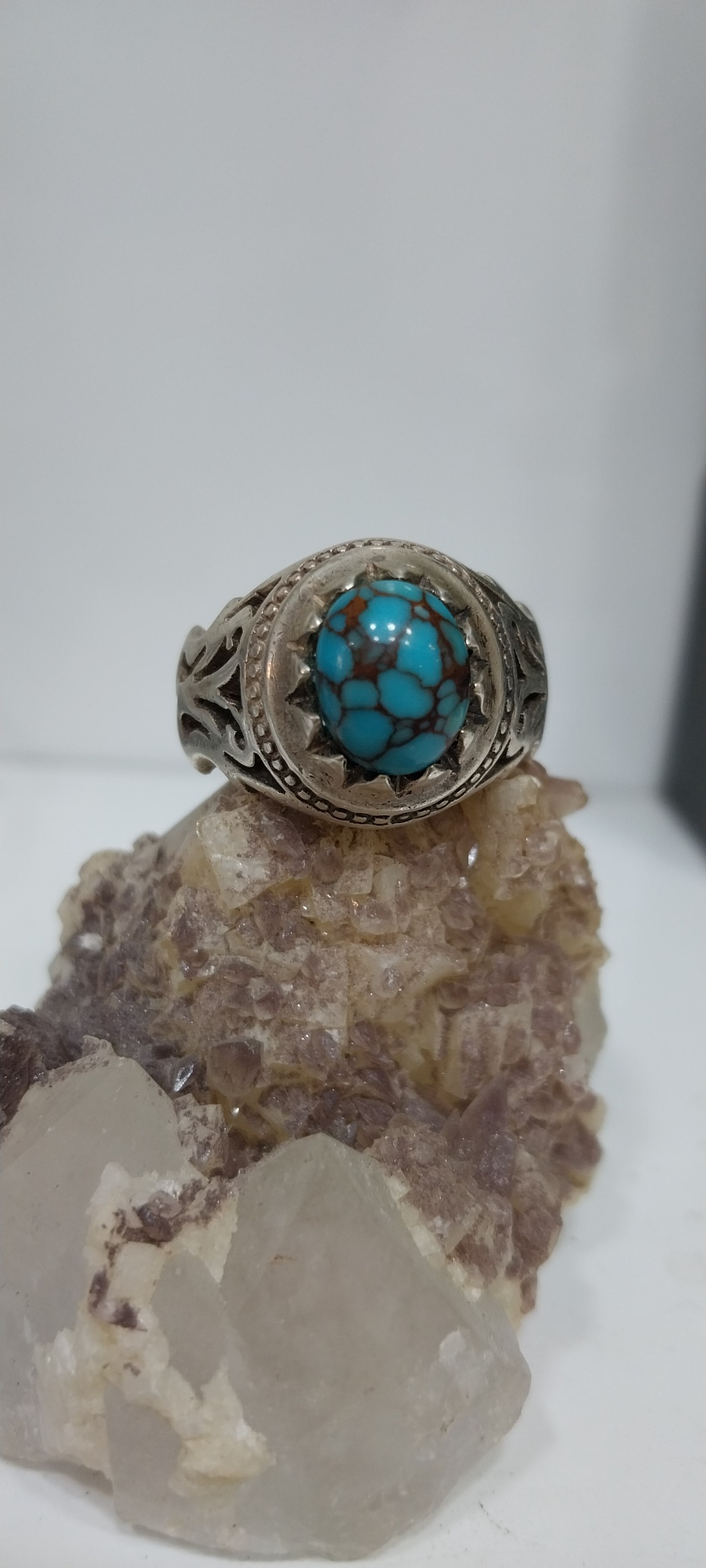 انگشتر نقره نگین فیروزه طبیعی بلدرچینی