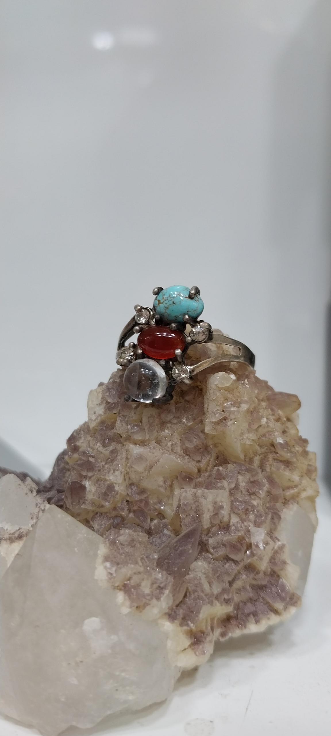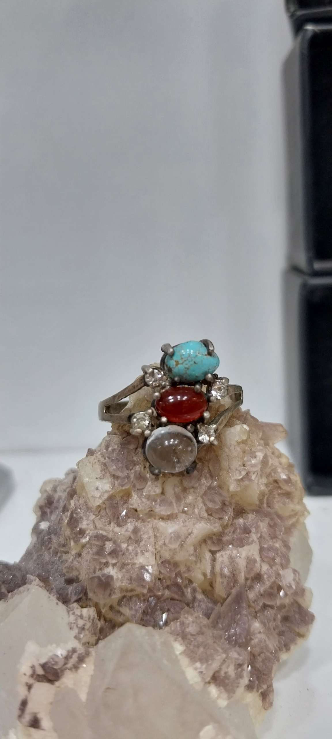 انگشتر نقره 3نگین عقیق فیروزه دُرطبیعی