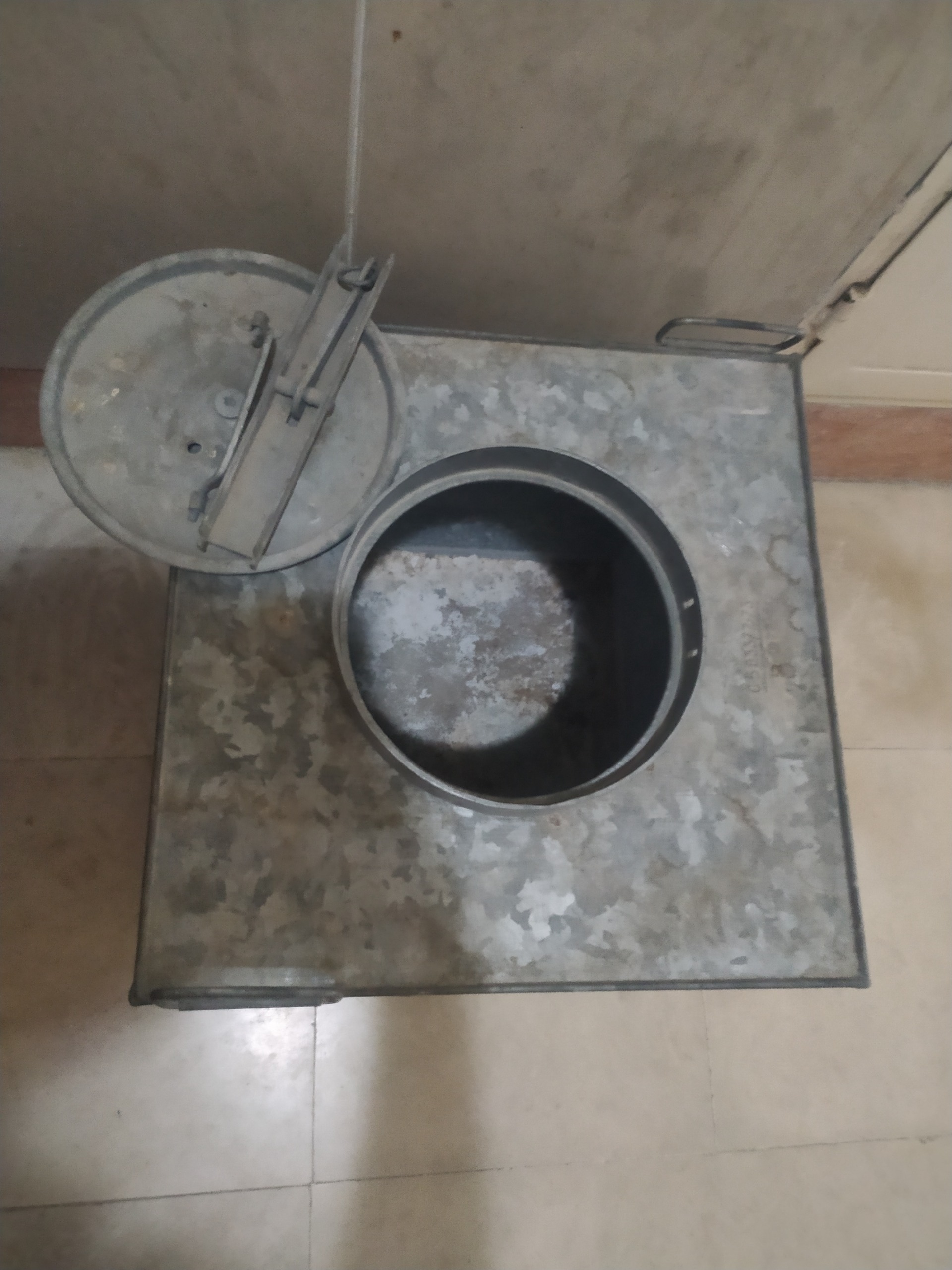 ظرف قدیمی خاص و کمیاب با فلز گالوانیزه مربوط به دهه 70 میلادی. احتمالاً در صنعت بستنی سازی یا لبنیات کاربرد داشته است. ساختار مکعبی با درب و حفاظ خاص. اندازه 42 در 42 سانتیمتر طول و عرض و 46 سانتیمتر ارتفاع.