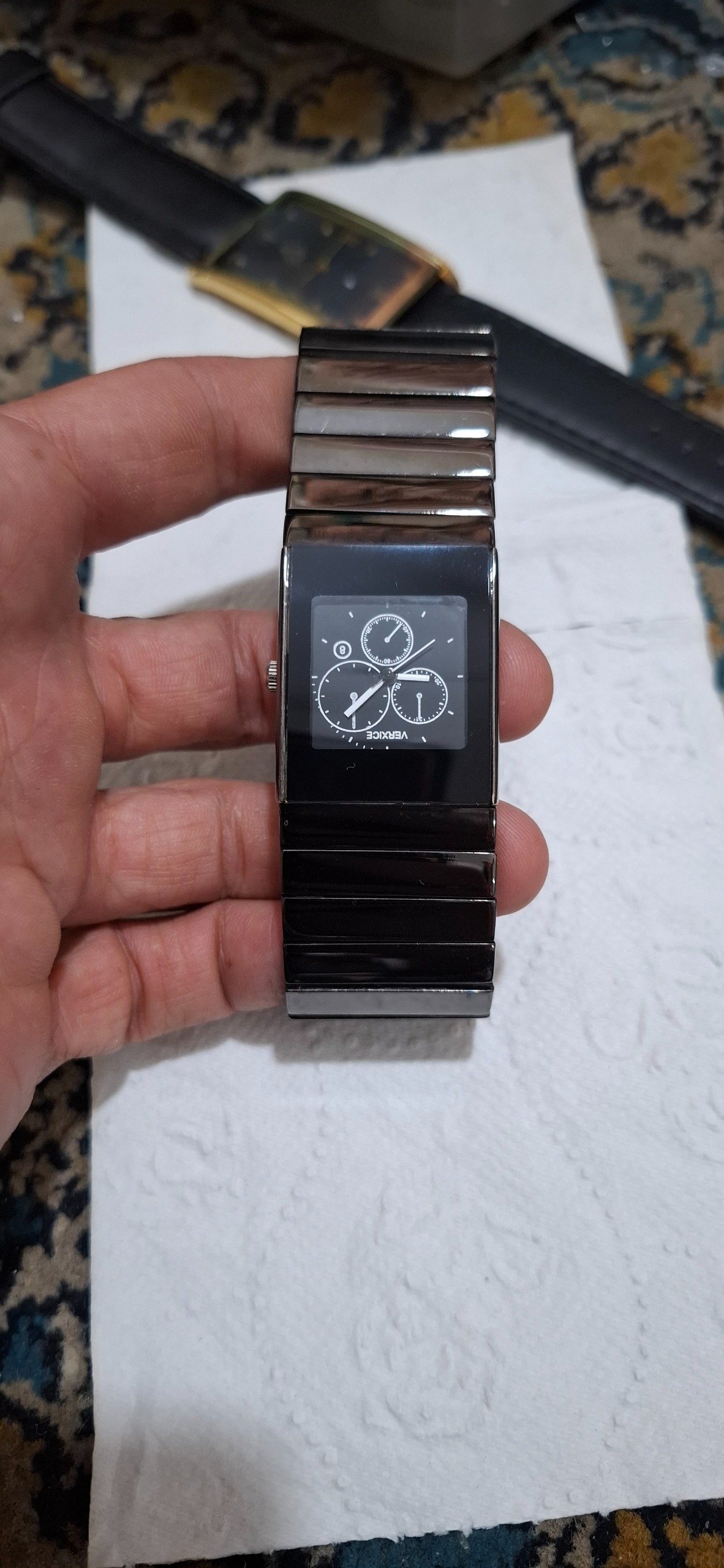 این ساعت طرح رادو سرامیکی است در حد نو است موتور ژاپنی اوماکسی تک موتوره بدون تاریخ طرح سه موتور است بدون جعبه ارسال میشود خیلی خوشگل و تمیز