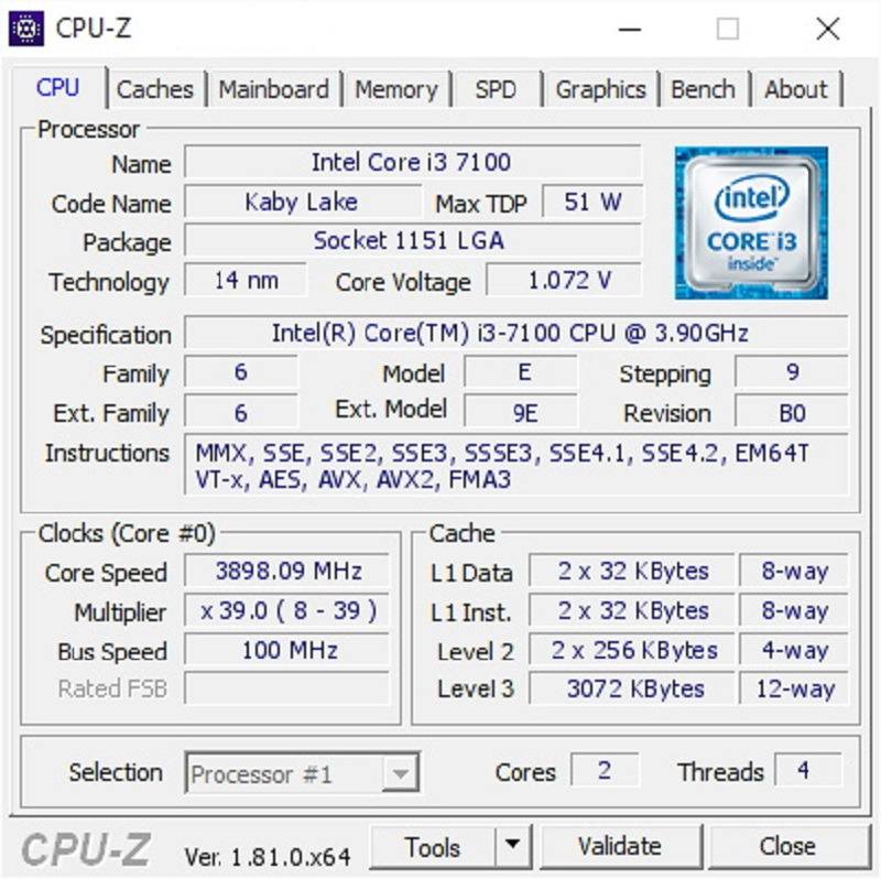مشخصات فنی Intel Kaby Lake Core i3-7100 BOX