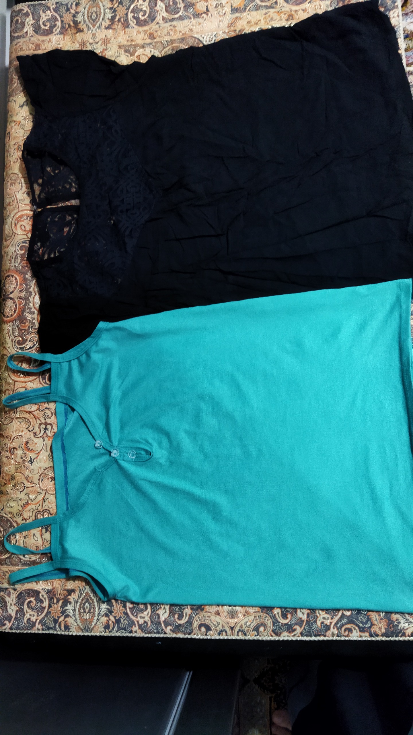 تاپ زنانه دو عدد رنگ مشکی و فیروزه ای،جنس خوب،استفاده نشده