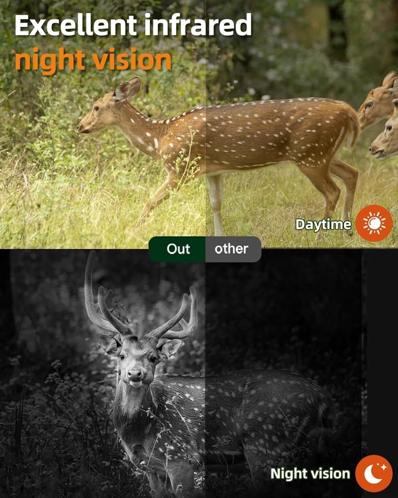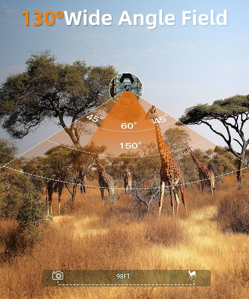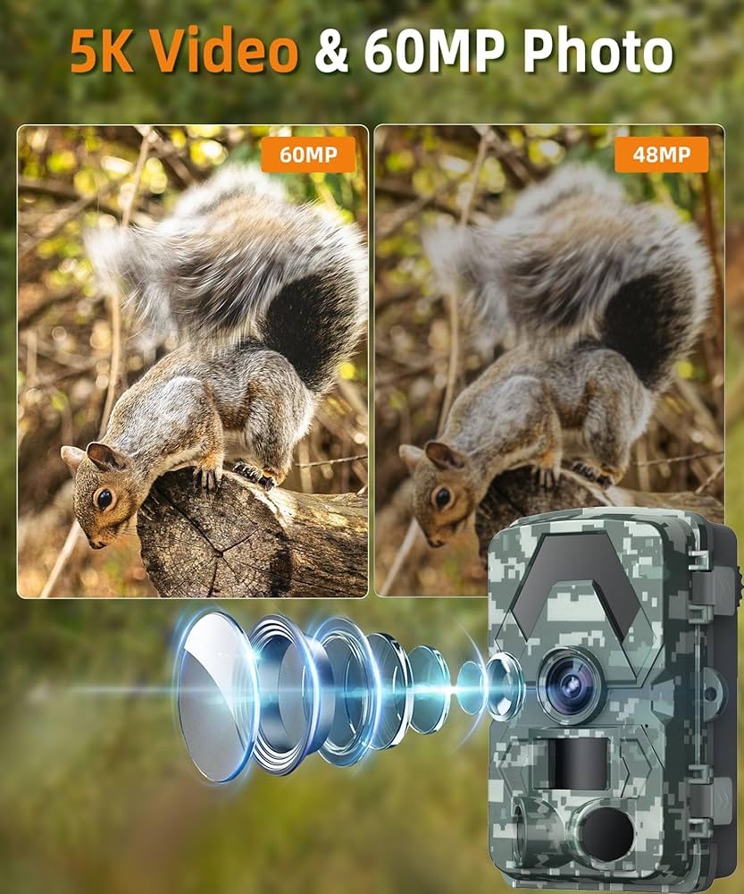 قابلیت دید در شب و پیکسل 5K HD: دوربین حیات وحش دارای وضوح 5K و پیکسل 60 مگاپیکسلی است. این دوربین به شما امکان میدهد لحظات هیجانانگیز عبور حیوانات را به صورت واضح، چه به صورت عکس و چه به صورت فیلم، ثبت کنید. با چراغهای LED بدون تابش، میتوانید در شب از حیوانات بدون ایجاد مزاحمت برای آنها عکس بگیرید و در نتیجه زندگی روزمره آنها را بازسازی کنید.