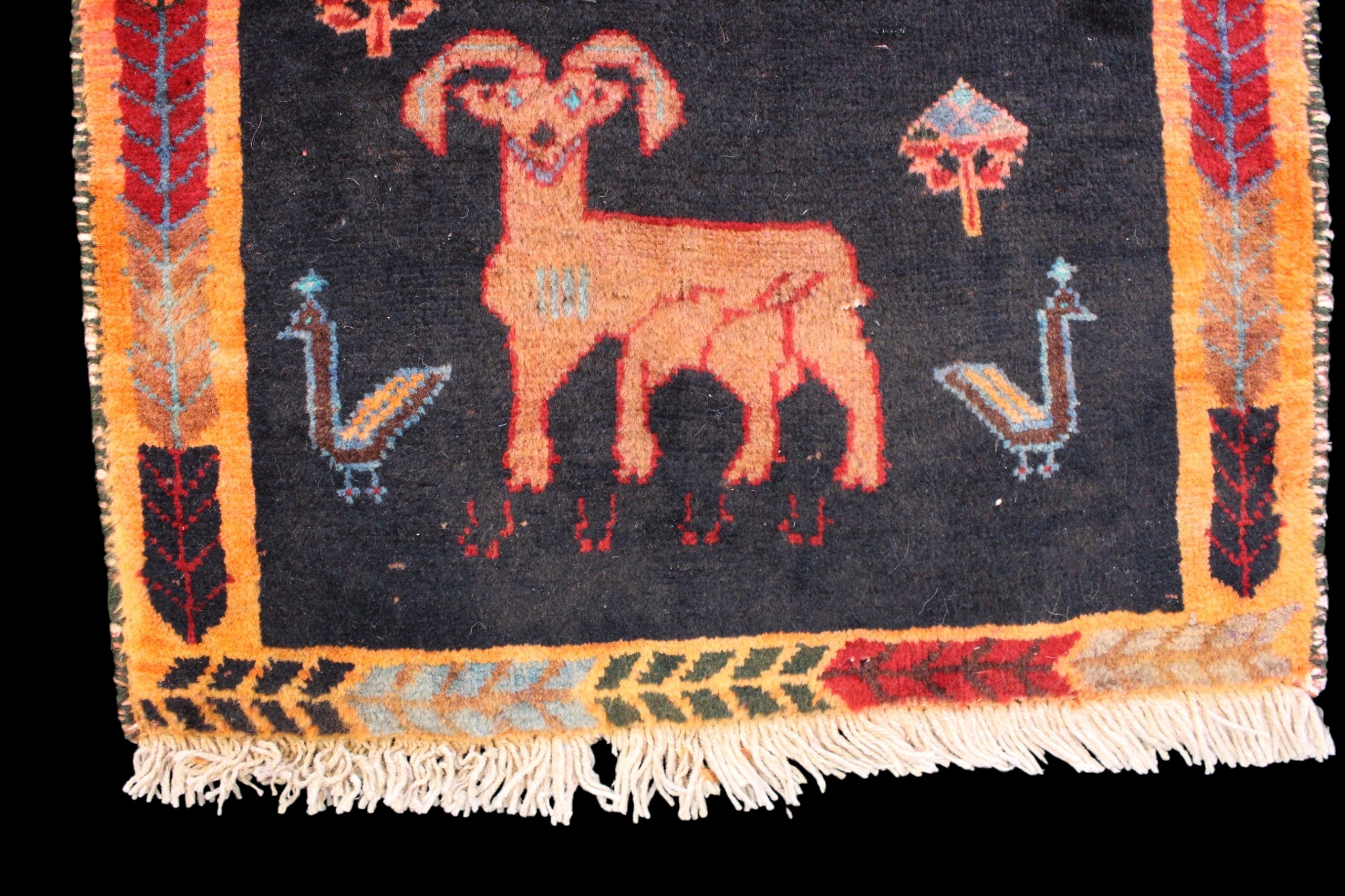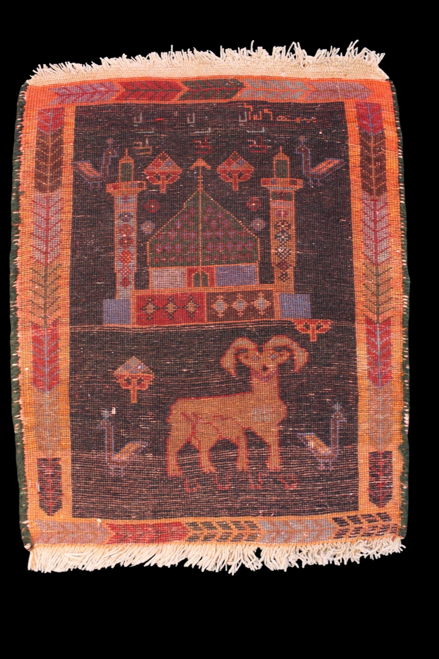 در بخش پایینی، نقش قوچ بهعنوان نماد قدرت، برکت و استواری در فرهنگ عشایر جای گرفته است.