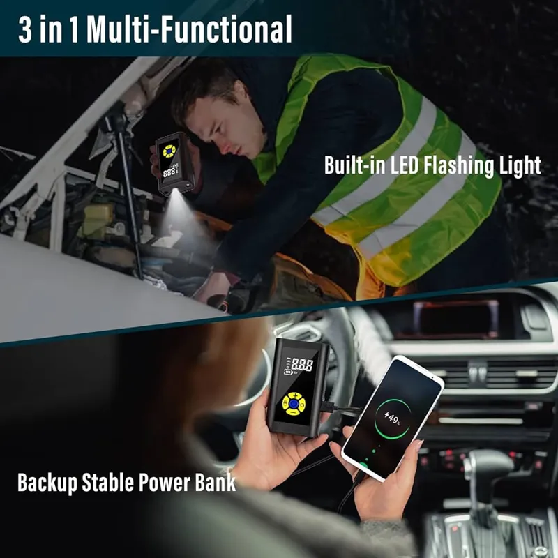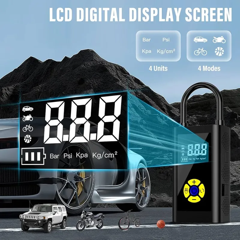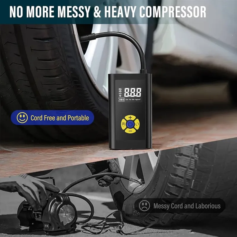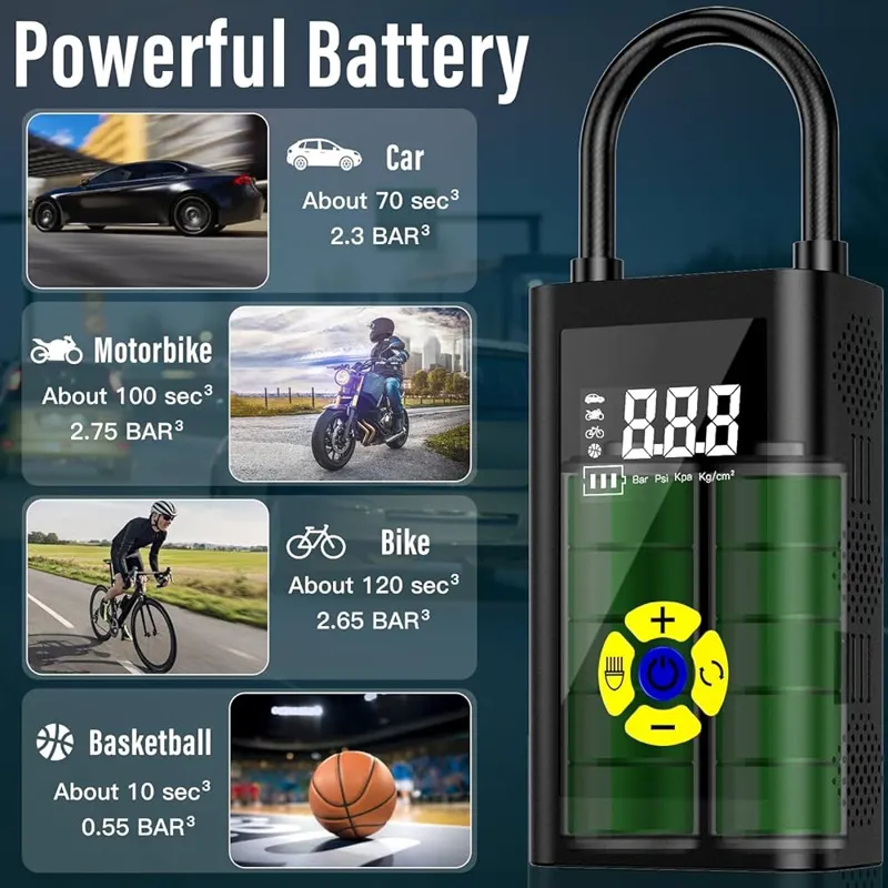 کمپرسور هوای قابل حمل Sunlary، کمپرسور هوای قابل حمل کوچک، تلمبه دوچرخه برقی با چراغ USB/LED، حداکثر 150PSI، کمپرسور هوای قابل حمل قابل شارژ برای ماشین، دوچرخه، موتورسیکلت، توپ