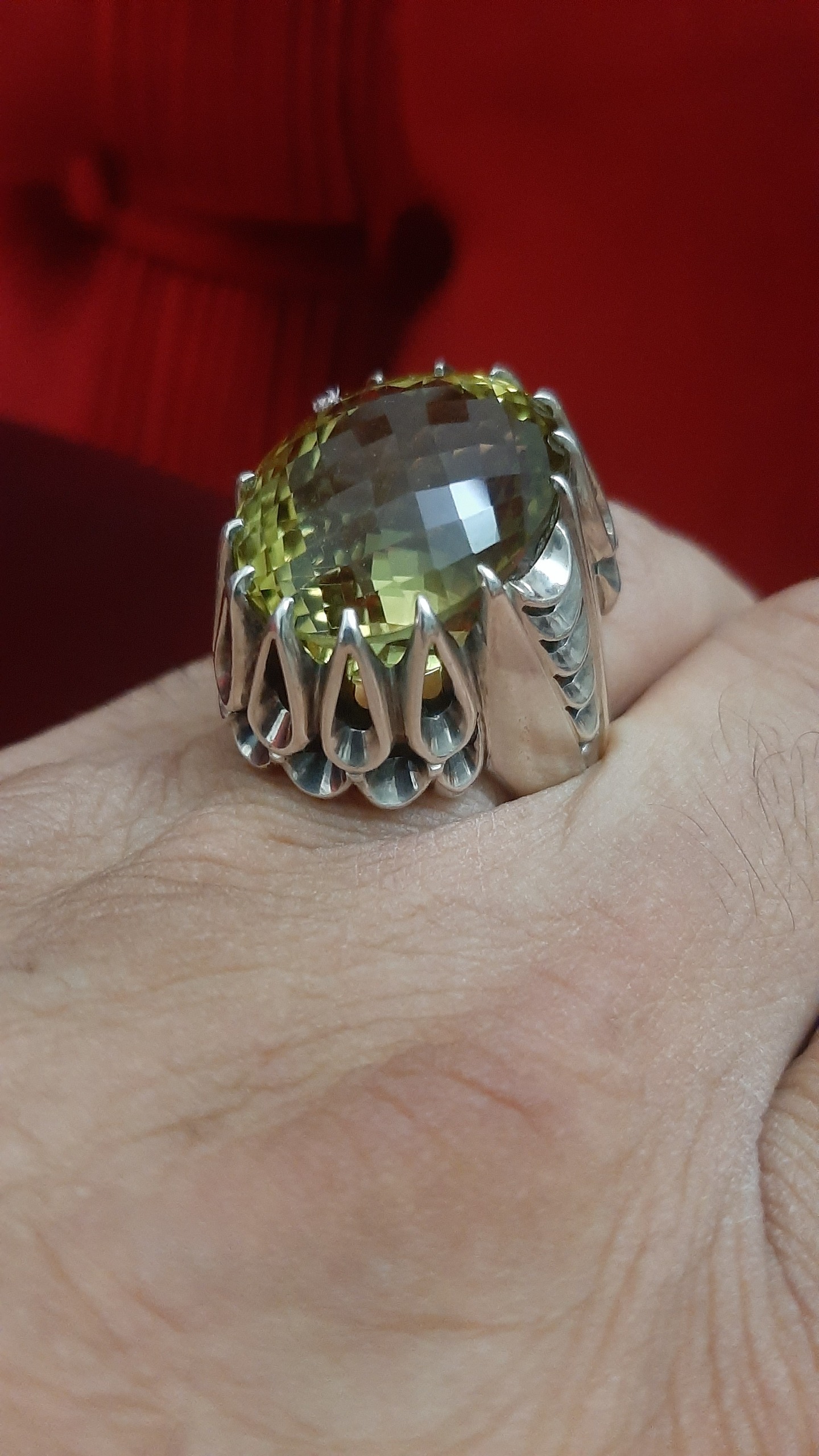 انگشتر نقره رکاب استاد کریمی قشنگ زیبا با سنگ ارزنده سیترین طلایی واقعا تویی دست چشم گیر نیاز به تعریف نیست چون انگشتر تویی عکس ببینید زیبا