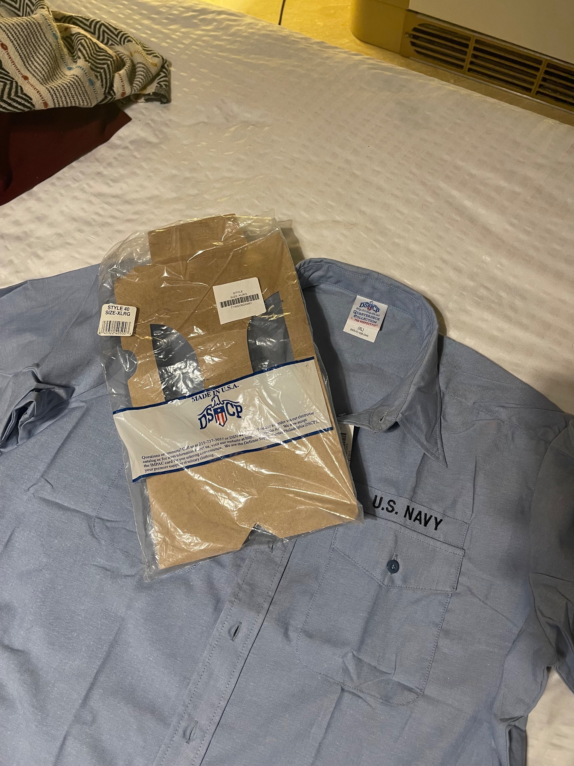 پیراهن آمریکایی آکبند رنگ آبی سایز xl با عرض سینه64 و سرشانه 50 و قد 74