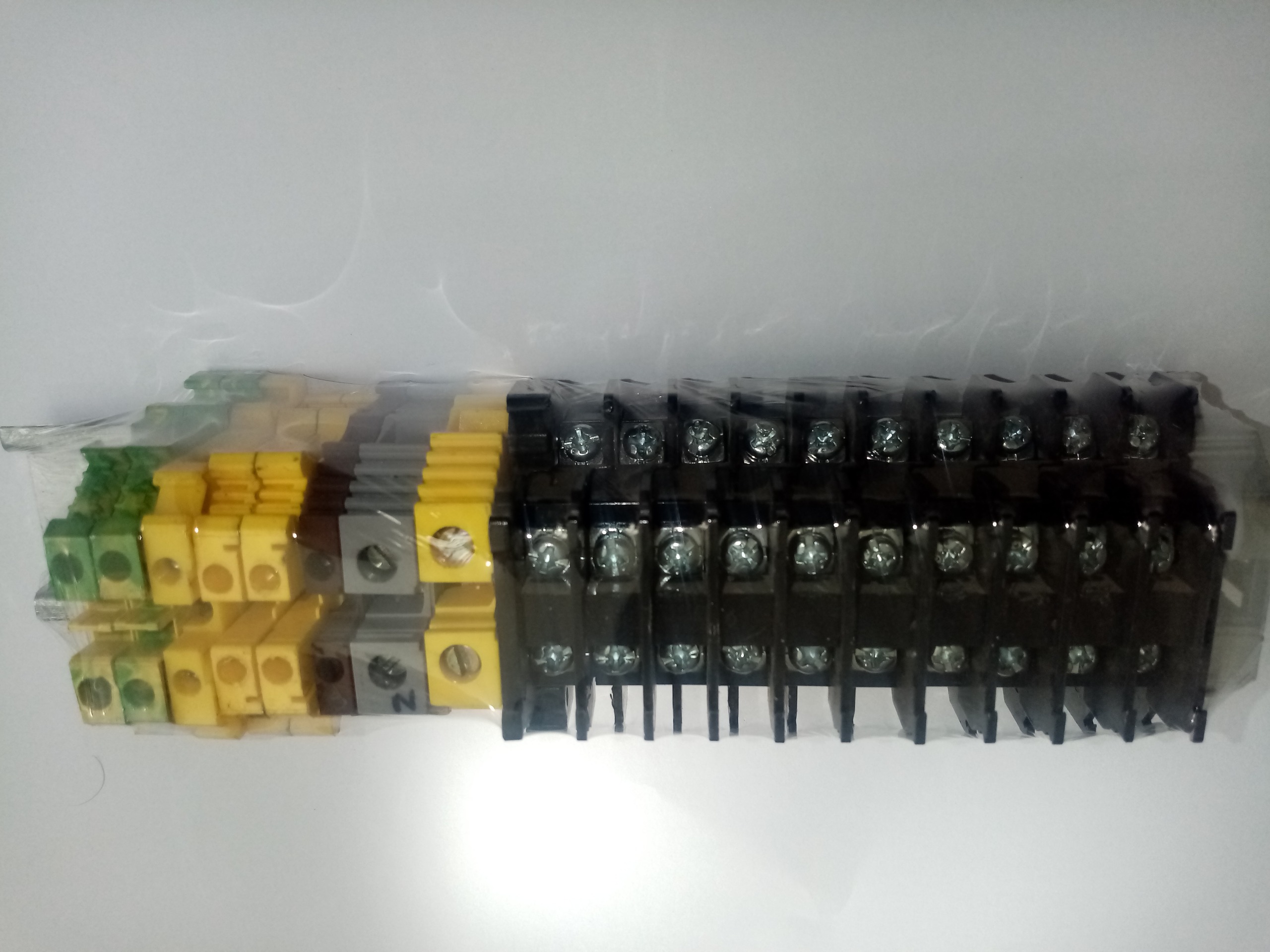 ترمینال پیچی دو طبقه نمره 6نصب روی ریل 10عدد دوطبقه به همراه 7عدد ترمینال رعد 16،10،4 اول و انتهای ریل هم با ترمینال نگه دارنده فیکس شده.