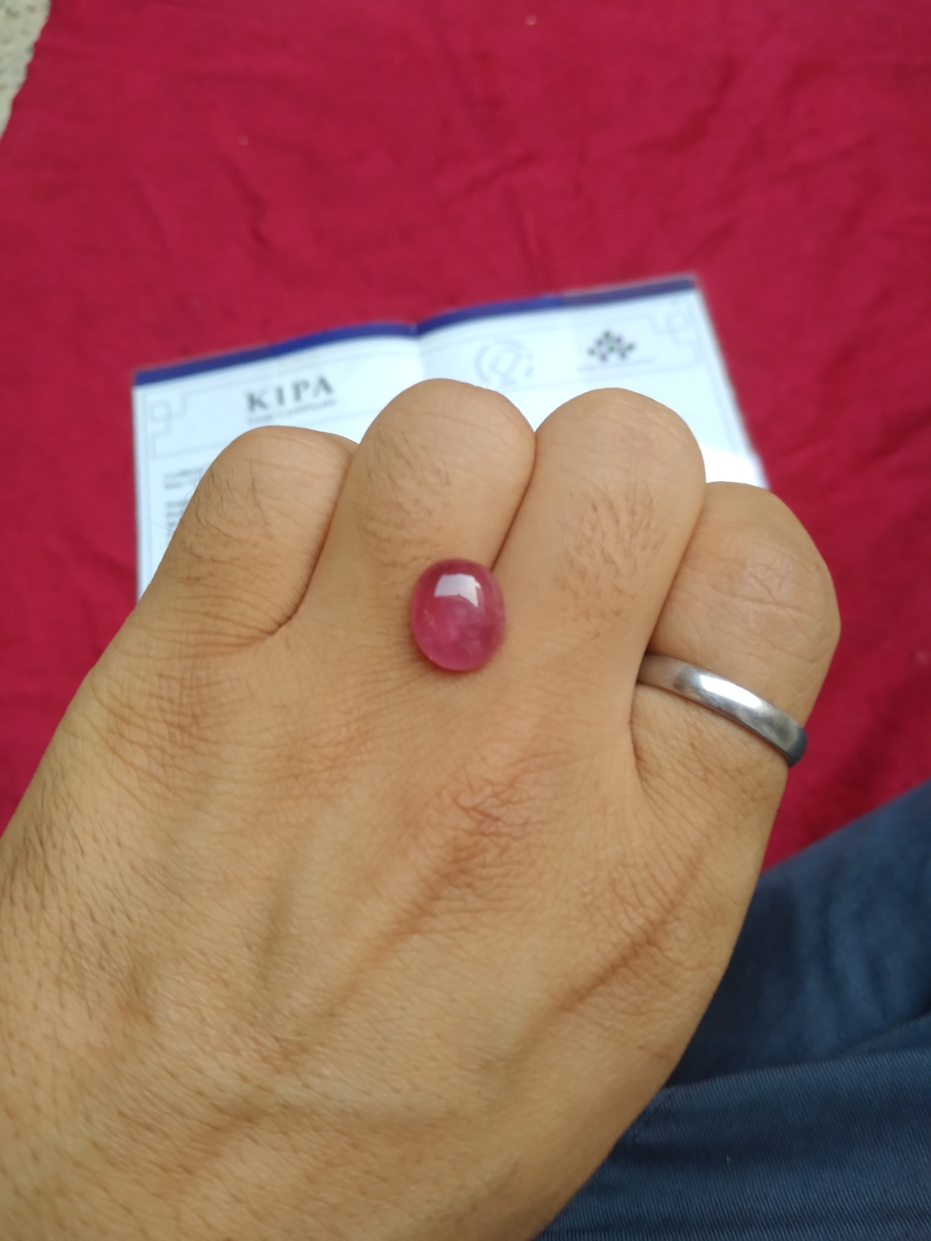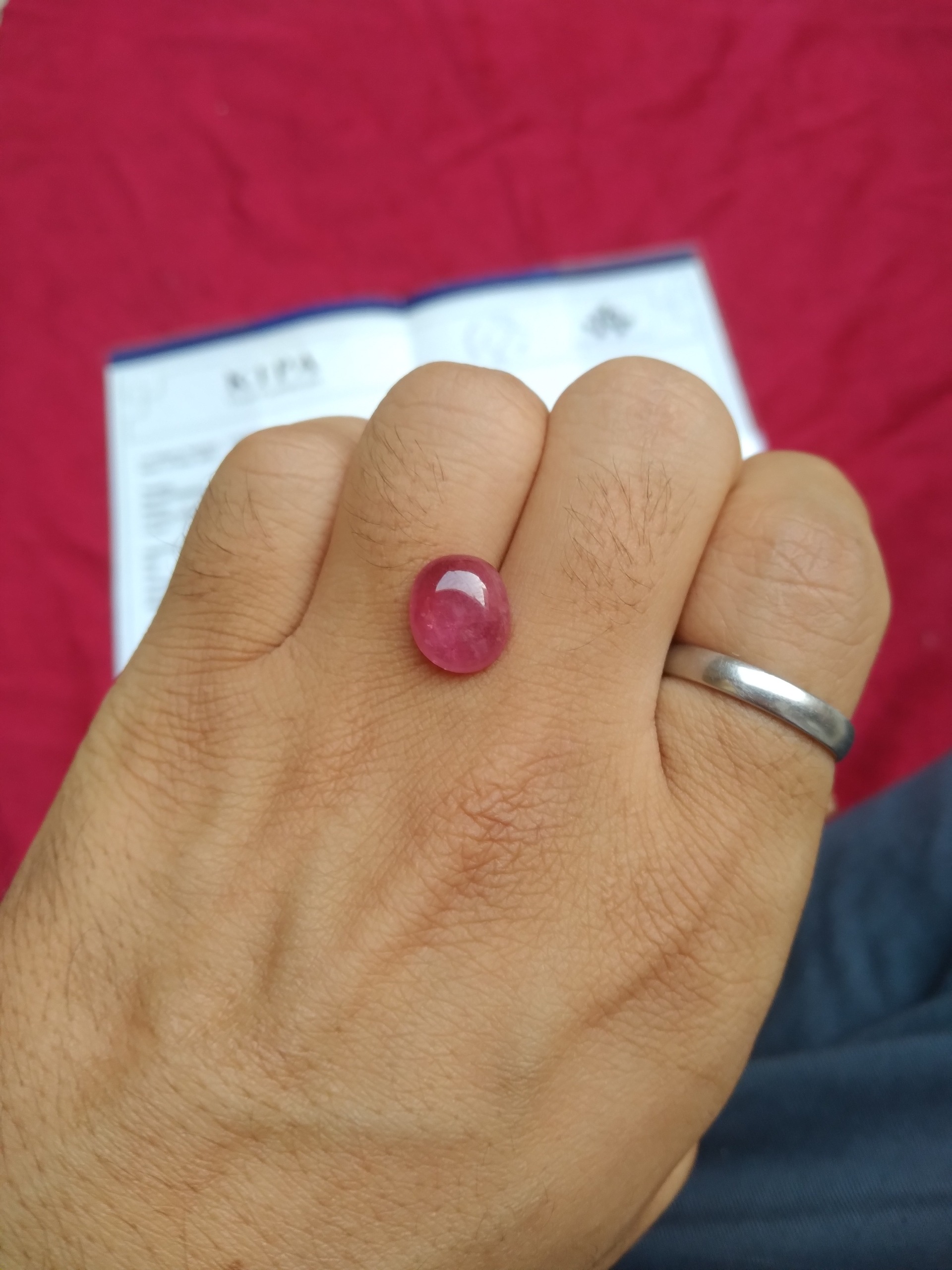 این یاقوت معدنیه کیفیت واقعا بالایی داره رنگش طبیعیه 8.5قیراز وزن این سنگه ترک ورس شکستگی یا هر عیب دیگه اصلا نداره برای ساخت انگشتر واقعا عالیه کاملا سالمه قیمتش واقعا مناسبه این سنگ با این شناسنامه بالای 5ملیون تومن قیمتشه شناسنامه معتبر و قابل استعلام داره که فقط همین شناسنامه 2.5ملیون تومن قیمتشه.با ضمانت خرید 5روزه.برای راحتی خیال مشتری.
