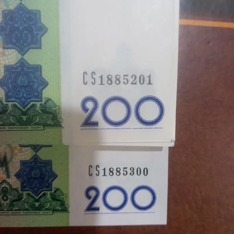 یک بسته اسکناس 200 سوم ازبکستان نو و سوپر بانکی سریال 1 تا 100 چاپ 1997 عین تصاویر اسکناسی پهن و بسیار زیبا