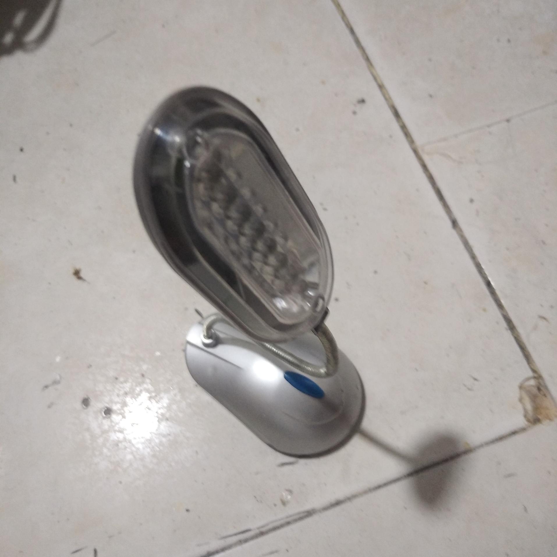باسه باتری قلمی کارمی کند لامپ ال ای دی است گردن فنری به هرطرف می چرخد کلید آبی برای روشن و خاموش کردن است سالم و تست شده