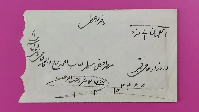 پاکت وسند تاریخی ،خطی زیبا دوره ناصرالدین شاه 1271