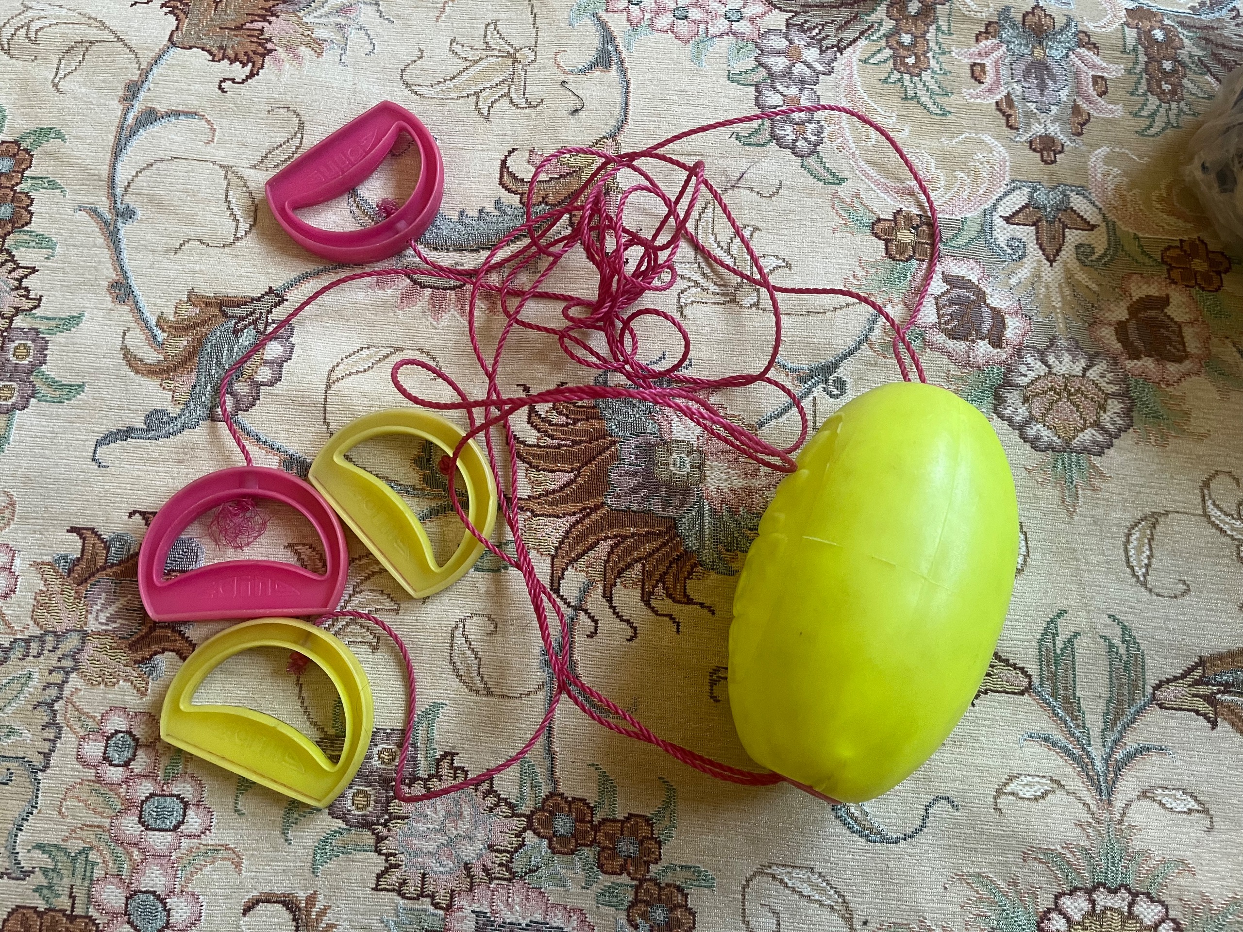 دو عدد طناب و یک عدد توپ و پا و یک عدد فوم سه لایه استپ برند نیک فوم و وسیله بازی همه با هم