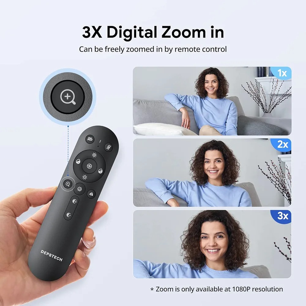 وب کم DEPSTECH DW50 Pro 4K برای کامپیوتر، حسگر سونی 1/2.55 اینچی Ultra HD، زوم 3 برابر، میکروفونهای دوگانه با قابلیت حذف نویز، کنترل از راه دور، دوربین استریم با فوکوس خودکار برای لپتاپ، مک، تیمز، زوم
