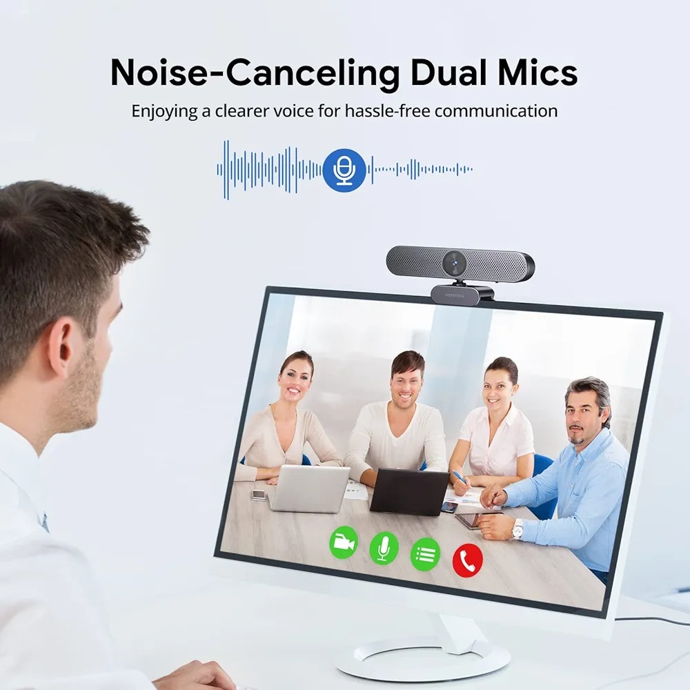 وب کم 4k دپس تک مجهز به میکروفون های دوگانه و فناوری فیلتر نویز دیجیتال است که میتواند به طور خودکار صدای شما را دریافت کرده و نویز پس زمینه را فیلتر کند. حتی در محیطهای پر سر و صدا، میتوانید صداهای مورد نظر خود را به راحتی ضبط کنید.