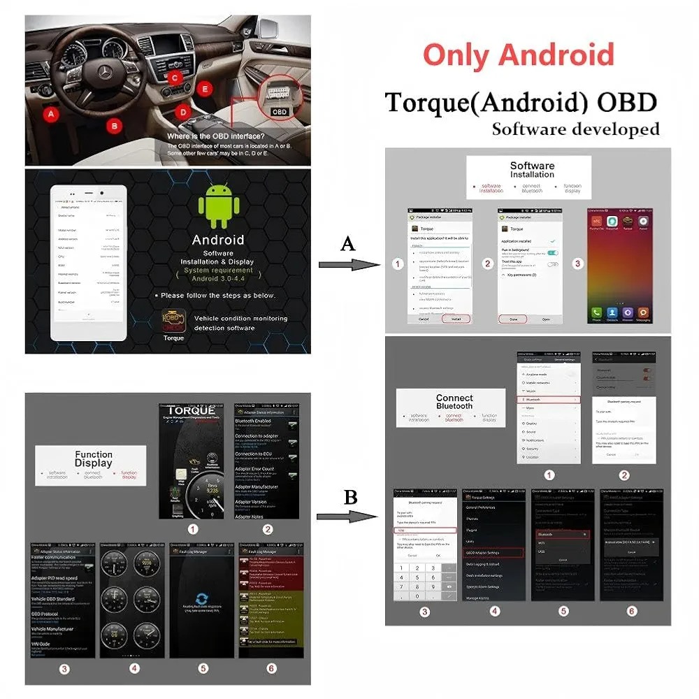 سازگاری با خودرو - خودروهای بنزینی 12 ولتی ساخت آمریکا پس از سال 1996 با پروتکلهای استاندارد OBD2 سازگار هستند، خودروهای دیزلی سبک 12 ولتی با بار 6.5 تن یا کمتر که پس از سال 1996 از پروتکلهای OBD2 پشتیبانی میکنند. روی خودروهای دیزلی 24 ولتی استفاده نکنید