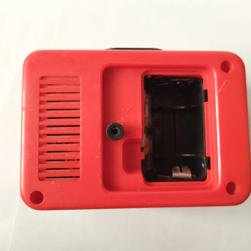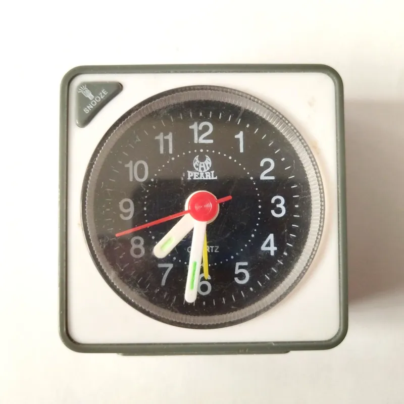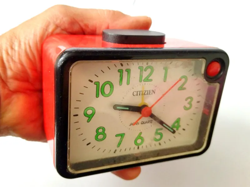 ساعت بزرگه وقرمز ژاپنی باتری متوسط میخوره وزنگ با ارمیچر صدا میده و لامپ روشنایی دارد وساعت کوچک باتری قلمی وزنگ ملودی هست لامپ روشنایی دارد درب پشت ندارد