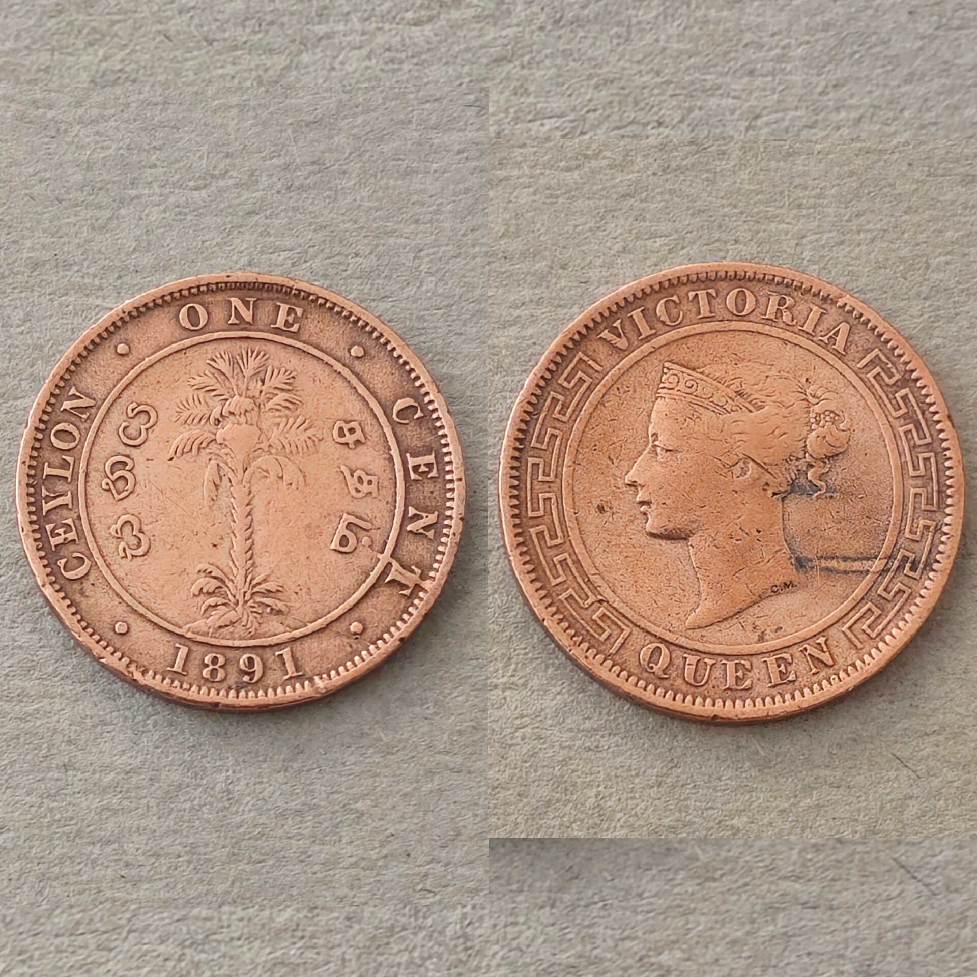 • کتیبه: "Ceylon One Cent 1891" با خطوطی خوانا و تاریخی