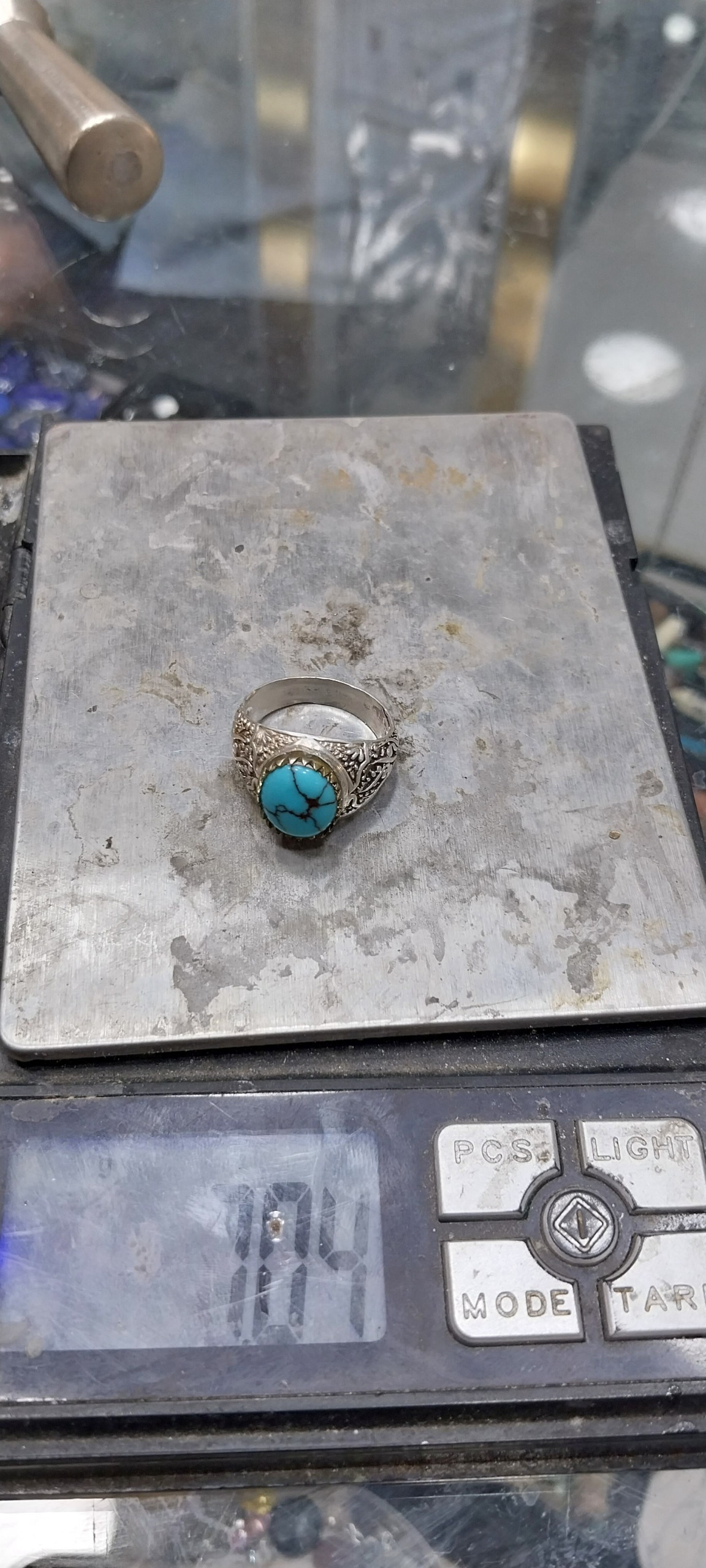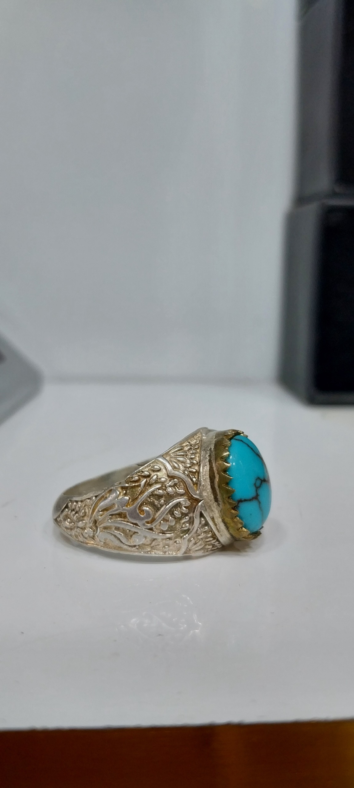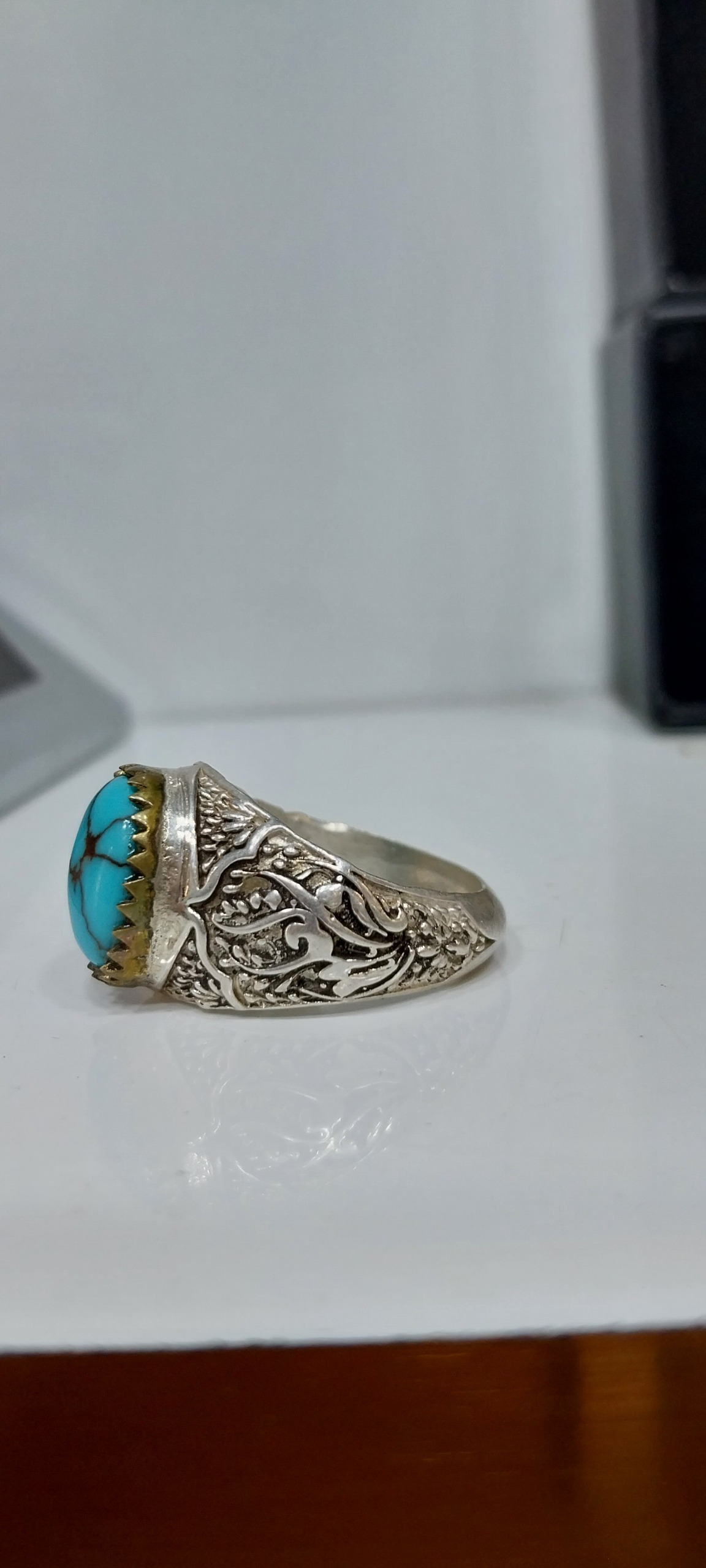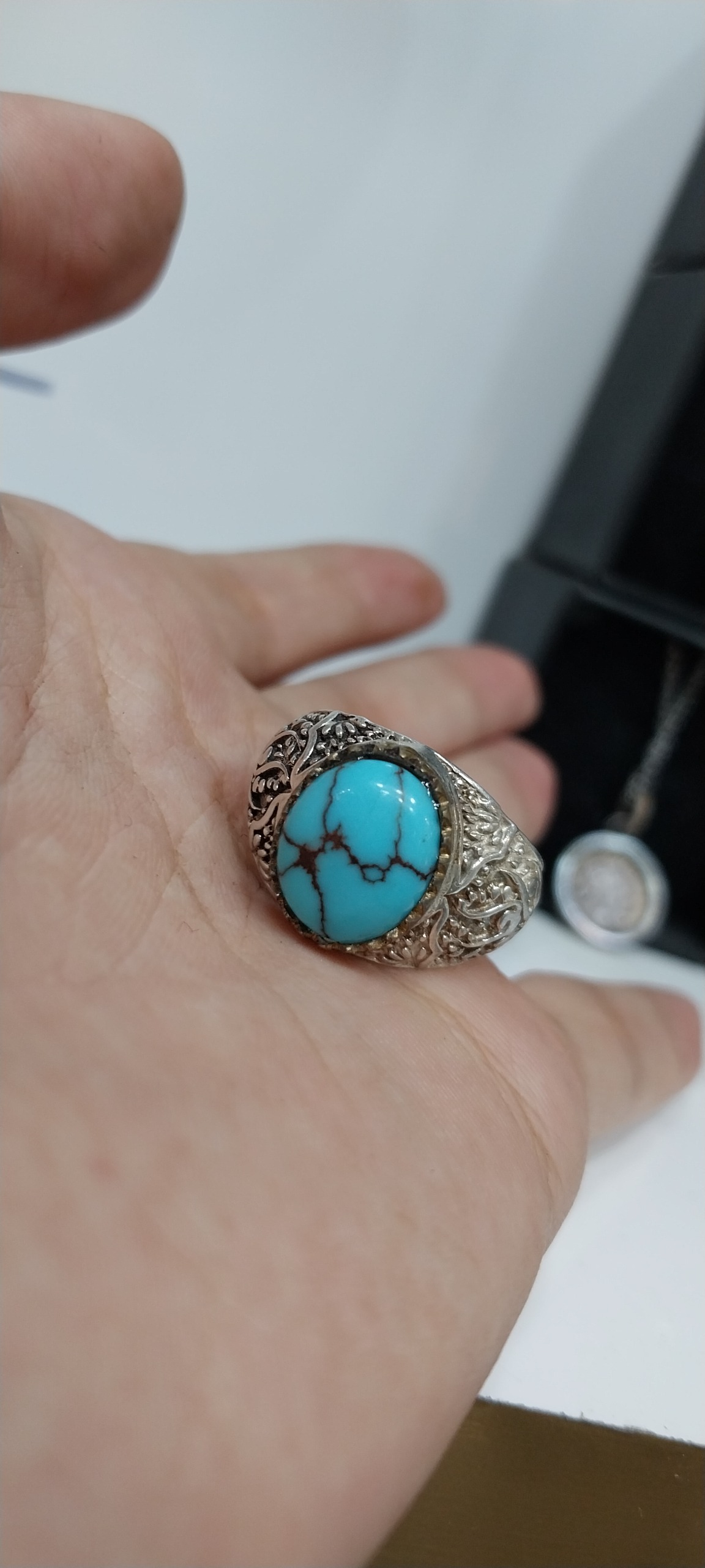 انگشتر نقره نگین فیروزه شجر دار معدنی