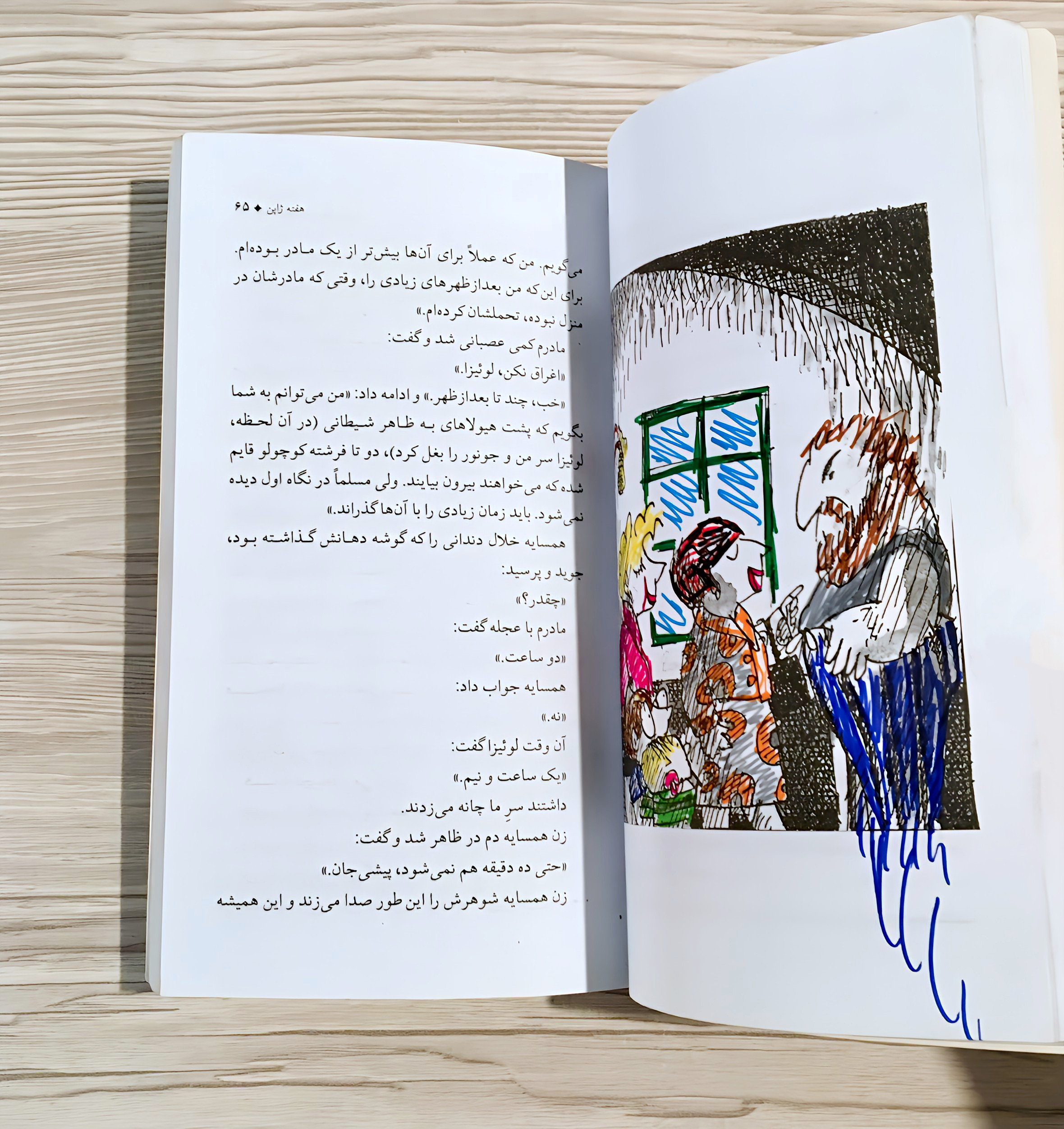 تعدادی از تصاویر نقاشی زیبای کتاب هم طبق تصویر آخر با ماژیک چند رنگی به شکل ابتکاری و ذوقی رنگ آمیزی شده ولی
