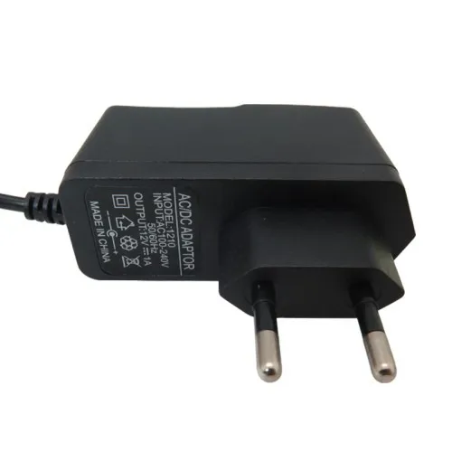 Switching Power Adaptor MODEL: F12W8-120100SPAV L.P.S. INPUT: 100-240 V ~ 50/60Hz OUTPUT: 12 V DC 1A طول سیم: 1 متر سایز فیش خروجی: قطر خارجی 5.5 میلیمتر قطر داخلی 2.5 میلیمتر