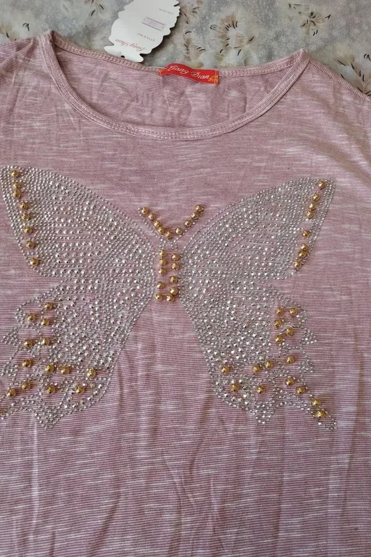 تیشرت زنانه صورتی نگین دار طرح پروانه
