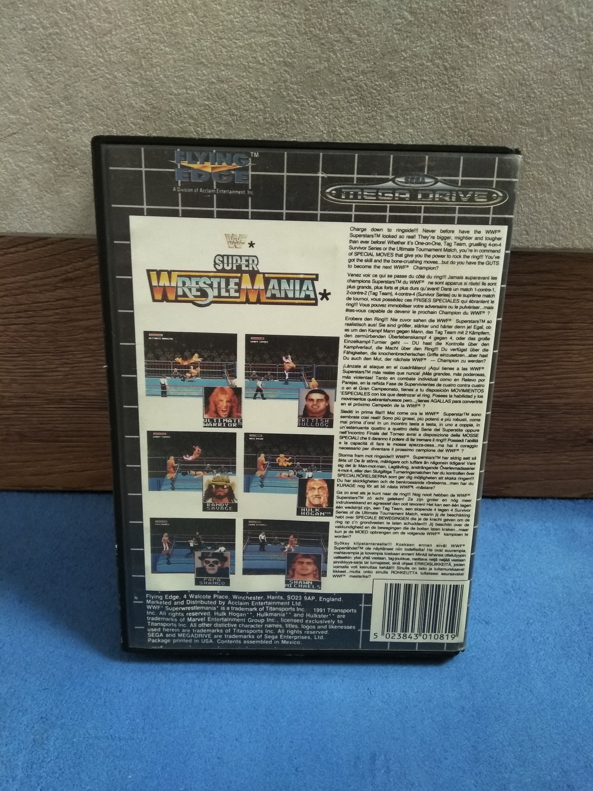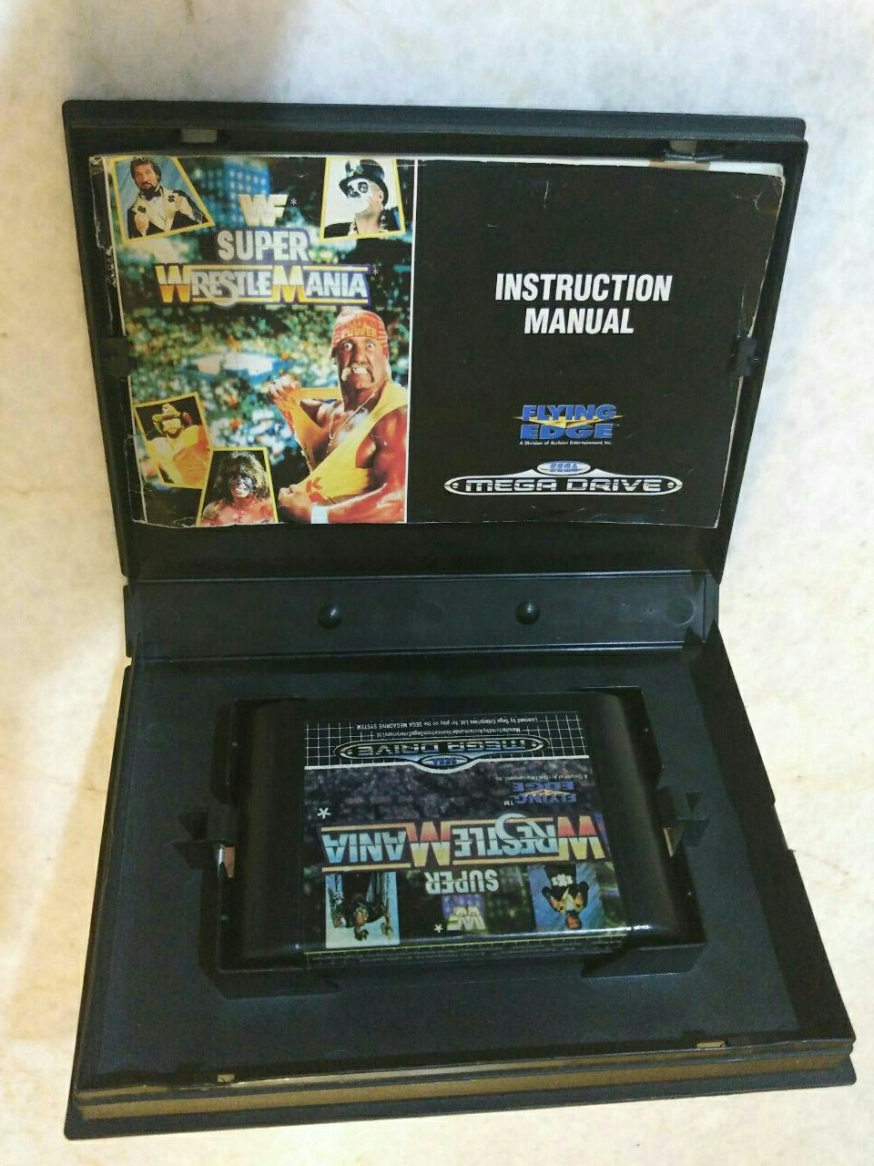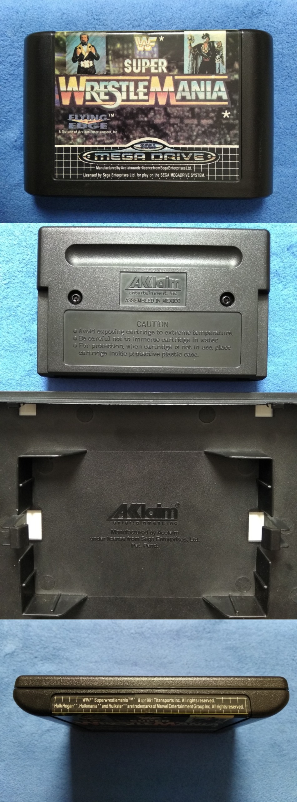 کارتریج اریجینال بازی WWF Super Wrestlemania (کشتی کج هالک هوگان) نسخه پال برای کنسول سگا مگادرایو با وضعیت مطابق تصاویر به همراه باکس، دفترچه و عکس کاور (همگی اصلی)، کاملا سلامت و تست شده. دفترچه با توجه به قدمت بیش از 30 ساله بازی آثار کهنگی دارد. کارتریج و لیبل آن بسیار تمیز بدون آسیب دیدگی یا مخدوش شدگی، باکس بازی سالم بدون شکستگی و عکس و مشمای کاور نیز بدون پارگی می باشند.