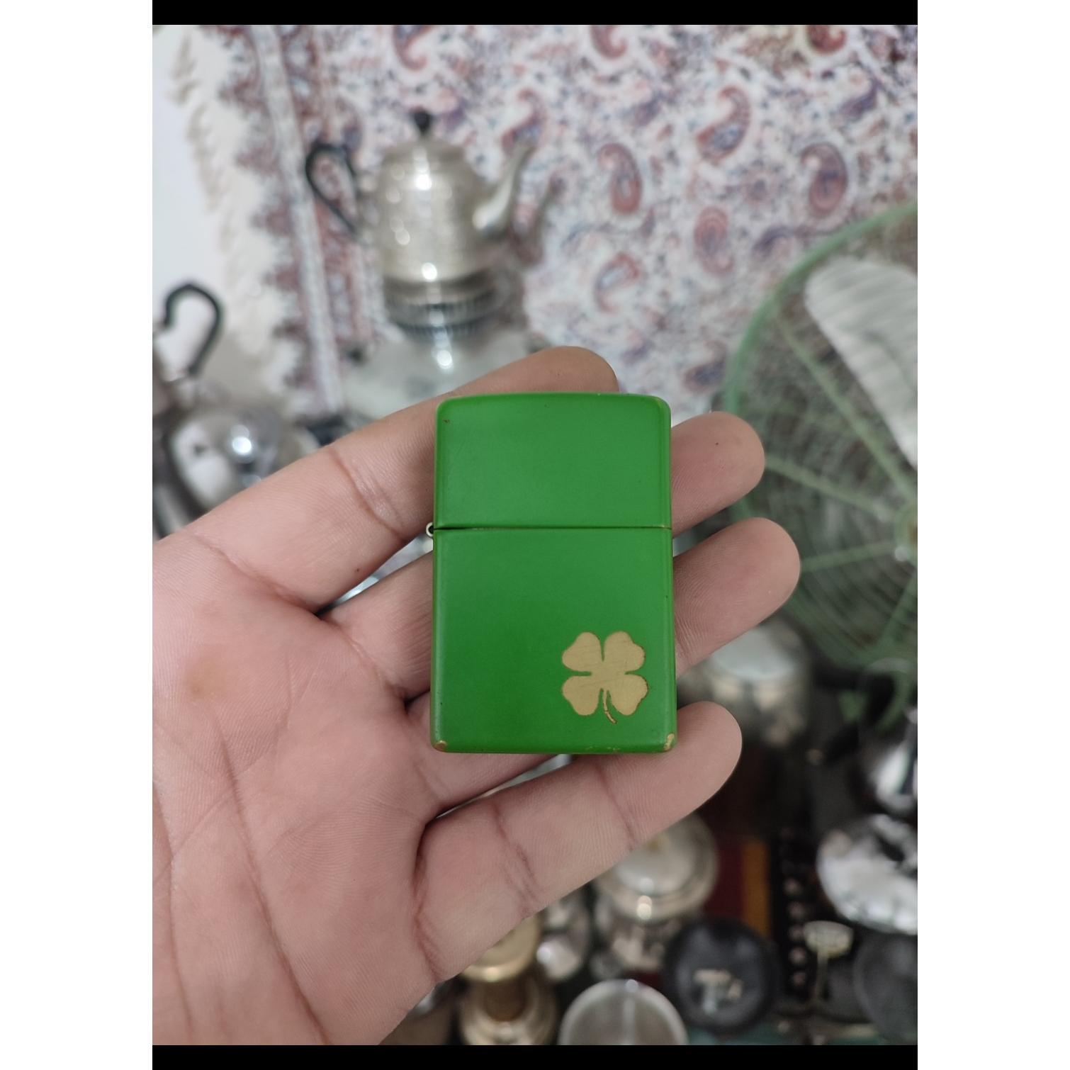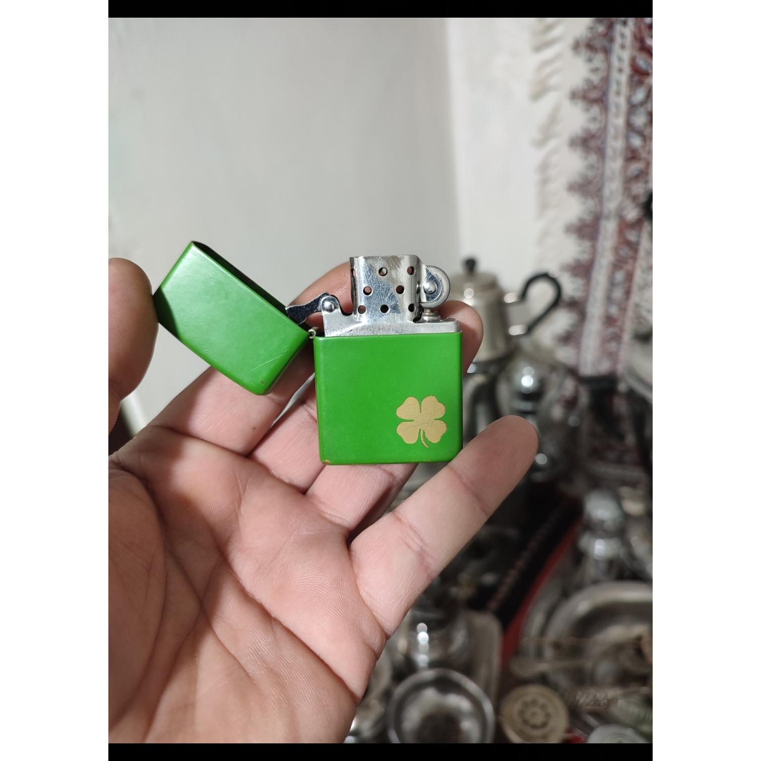 دو عدد فندک یکی زیپو اصلی و بدون تکرار و طرح شبدر سبز خوش رنگ و کم یاب