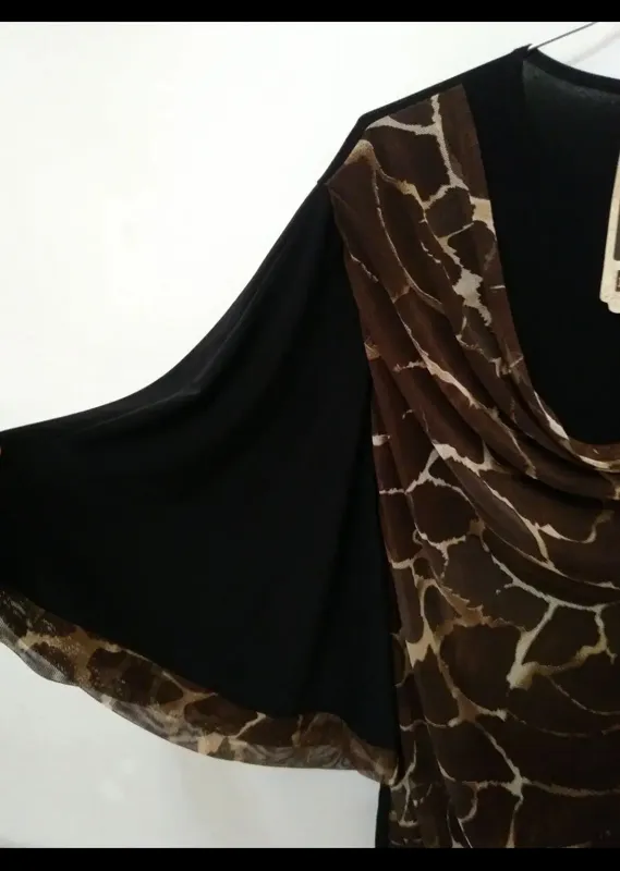 سلام. خریدار محترم و عزیز لباس مجلسی اکبند هست فقط نهایت یه ساعت. در یه مجلس استفاده شده و برا همین اتیکت هنوز روشه. جنس خود لباس ریون و جنس رویه ی لباس توری هست. تنخوری و جنس بسیار عالی. قد لباس از شانه حدودی 74 سانت. دور کمر 46 سانت. من سایز 42 زدم ولی کشی هست. برا 44 هم راحت انازه میشه. برا 48 هم اندازه میشه شاید چسبان باشه. استیناش تا ارنج میرسن و حالت خفاشی دارن.