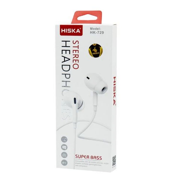 هندزفری Hiska HK-729 هندزفری سیمی هیسکا مدل HK729 اتصال با سیم از طریق رابط جک 3٫5 میلی متری صدا و کابل به طول 120 سانتی متر با روکش TPE کلید های فیزیکی به منظور مدیریت موسیقی، میزان صدا و مکالمه میکروفن داخلی HD به منظور مکالمه با کیفیت