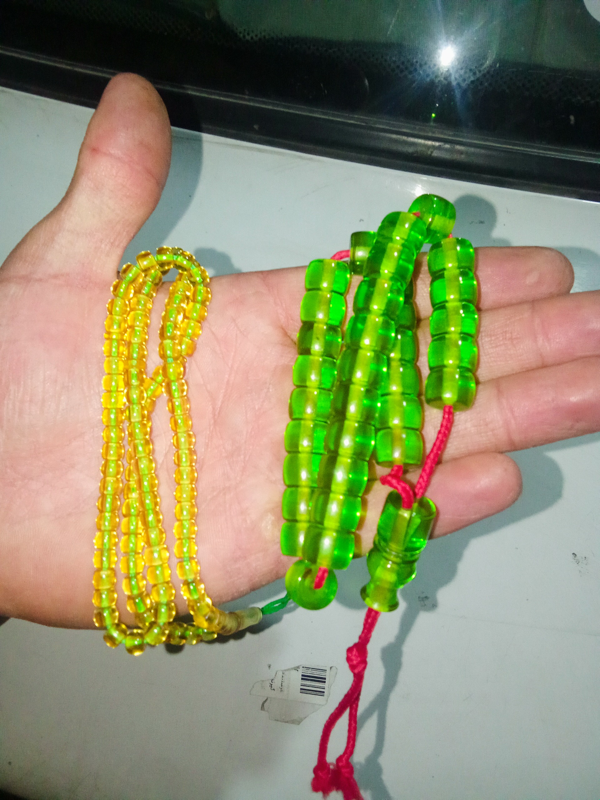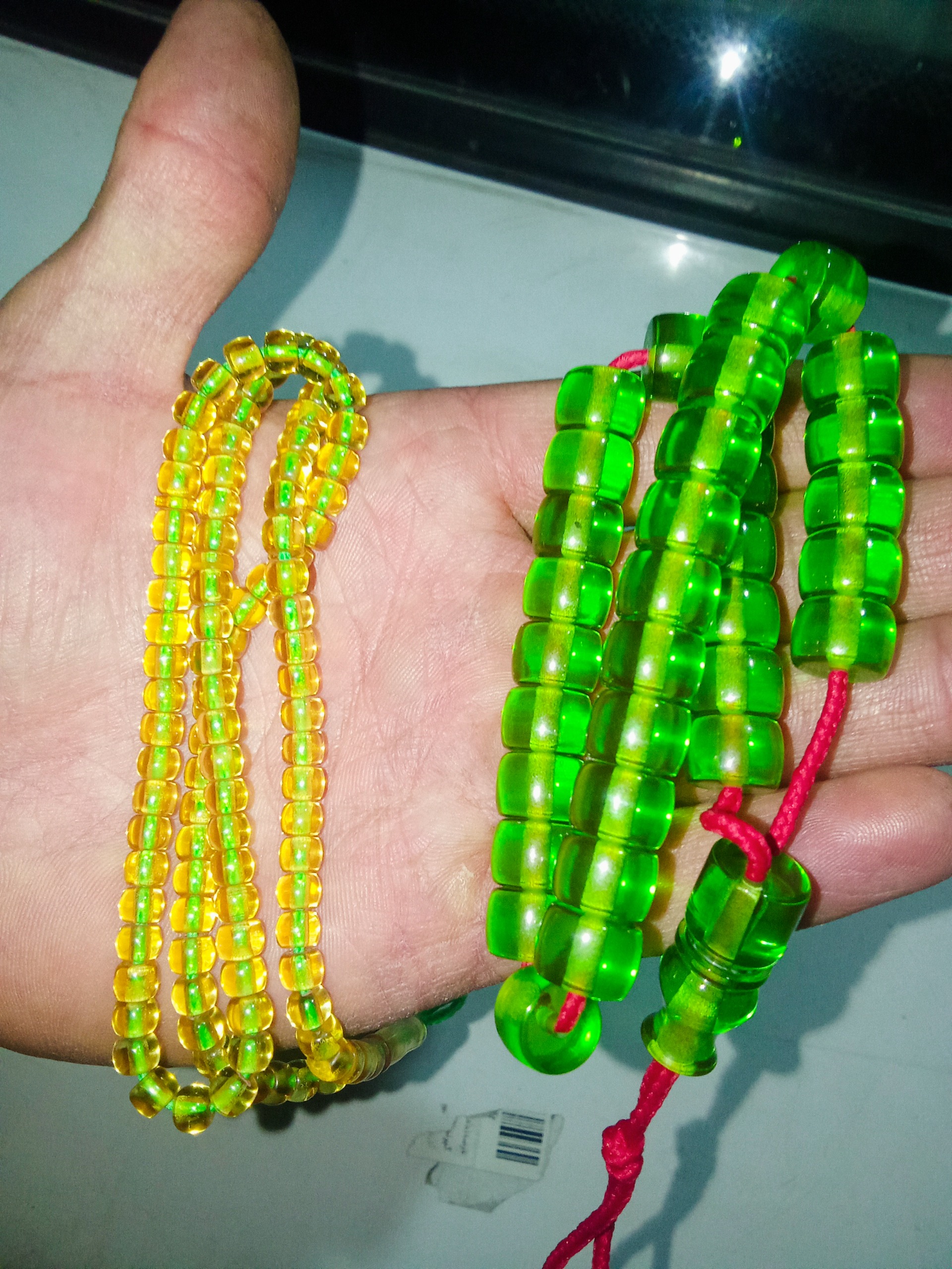 دو عدد تسبیح سندلوس آلمانی یکی چراکه 33دانه سبز چمنی خوش رنگ ویکی زرد 101دانه کامل و سالم بدون ایراد وقیمت برای جفت و هرکدام به قیمت 700تومن