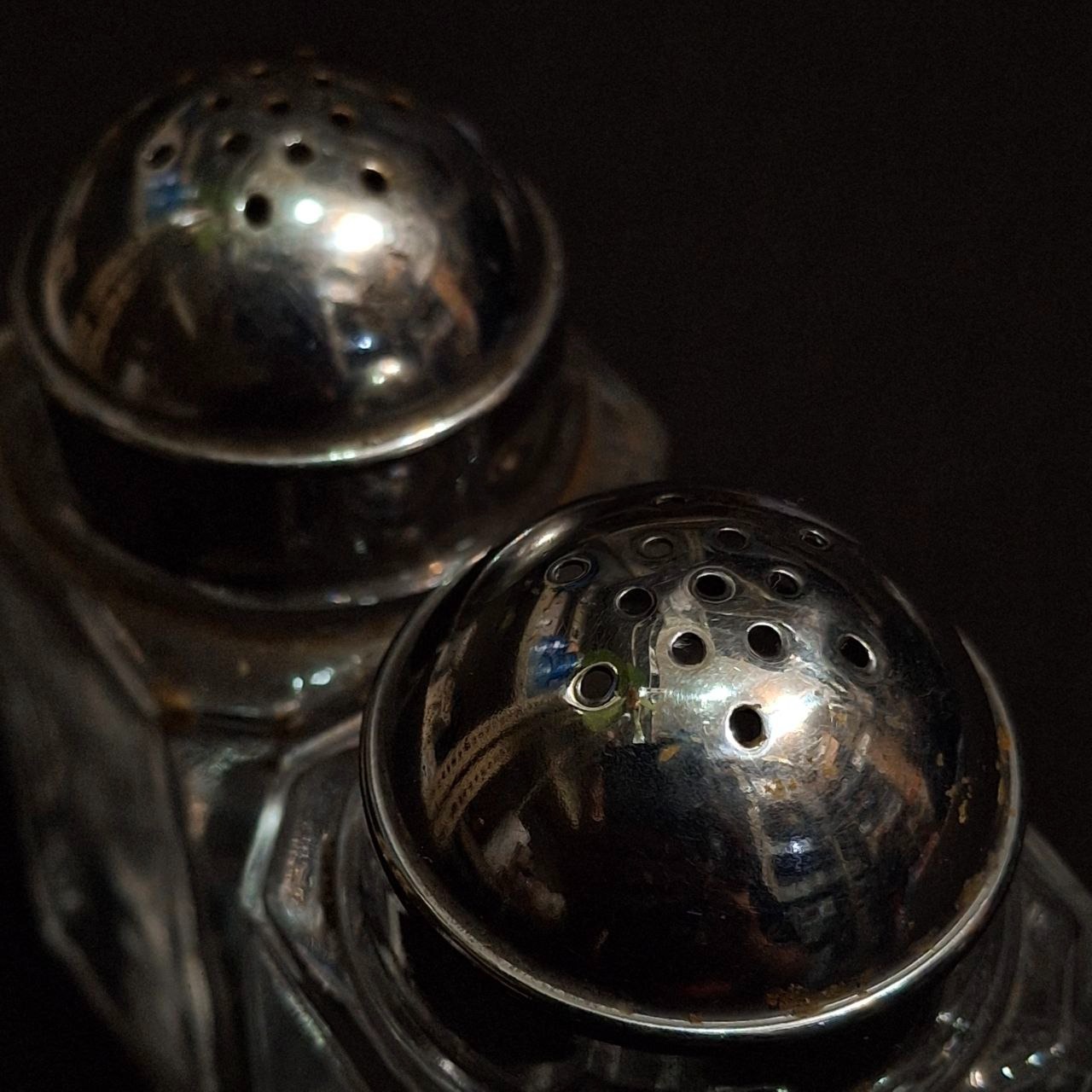 جفت نمکدان قدیمی درب سیلور پلیت سایز بزرگ