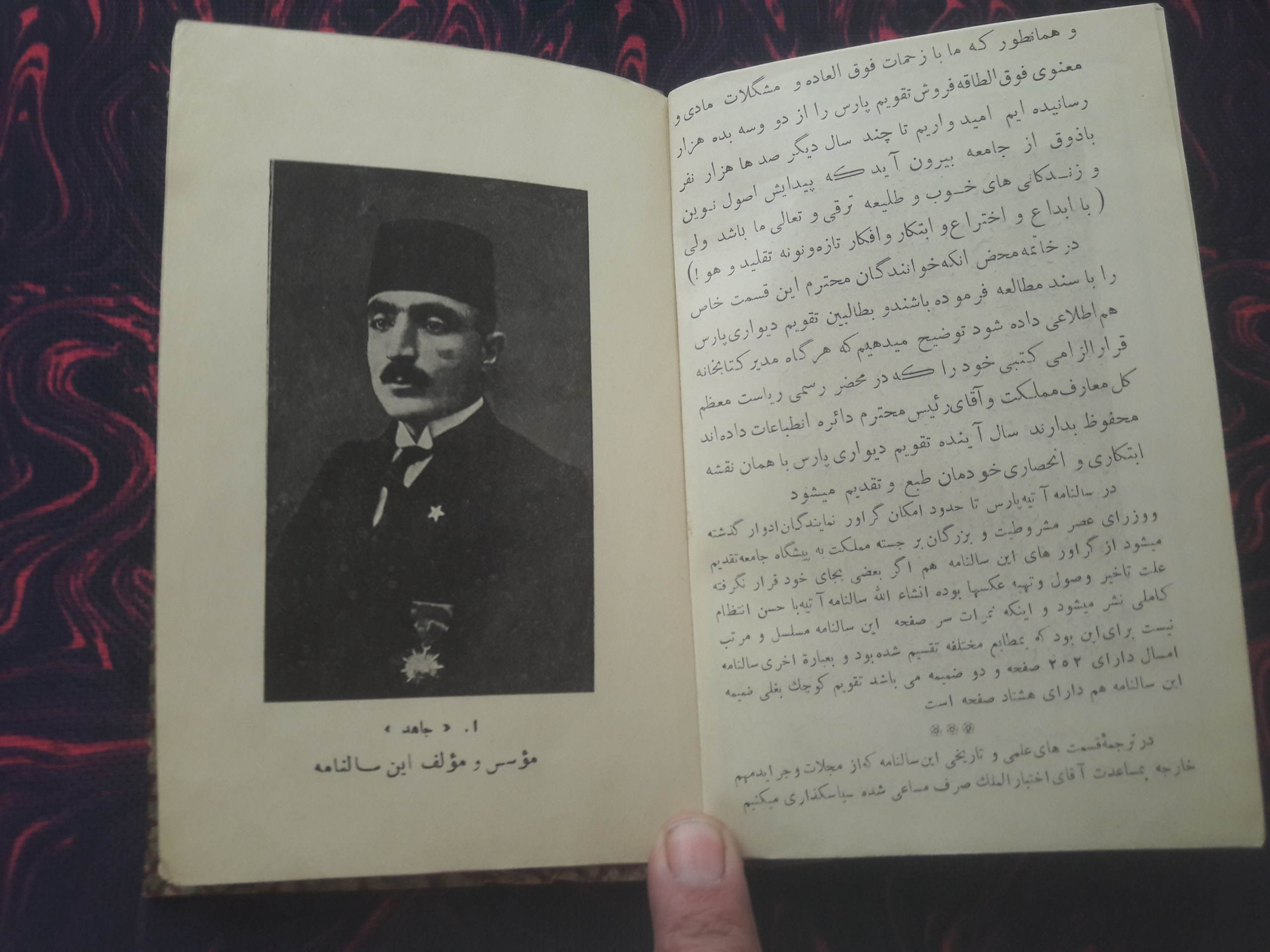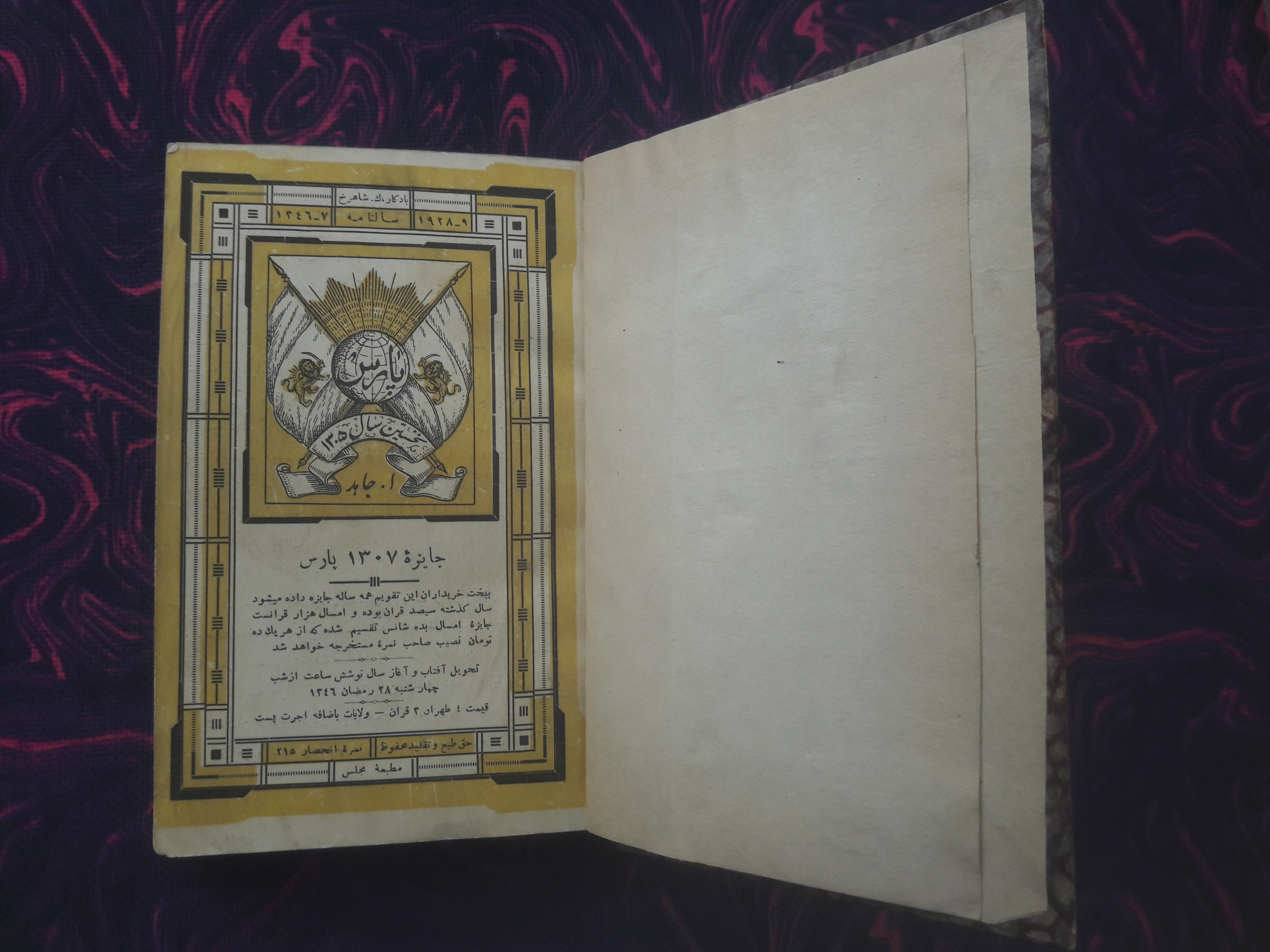 توجه:این سالنامه حدود 100سال قدمت دارد وحدود 500صفحه ودارای عکسهای قدیمی ونقشه های قدیمی ایران میباشد که سالم وکامل میباشد.