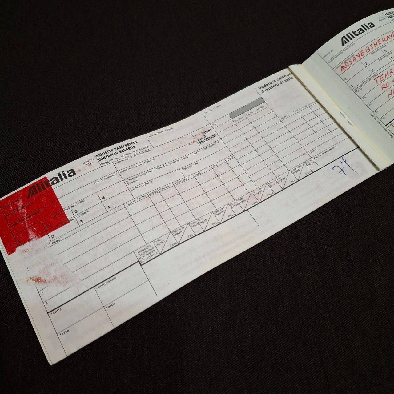 بلیط هواپیما قدیمی