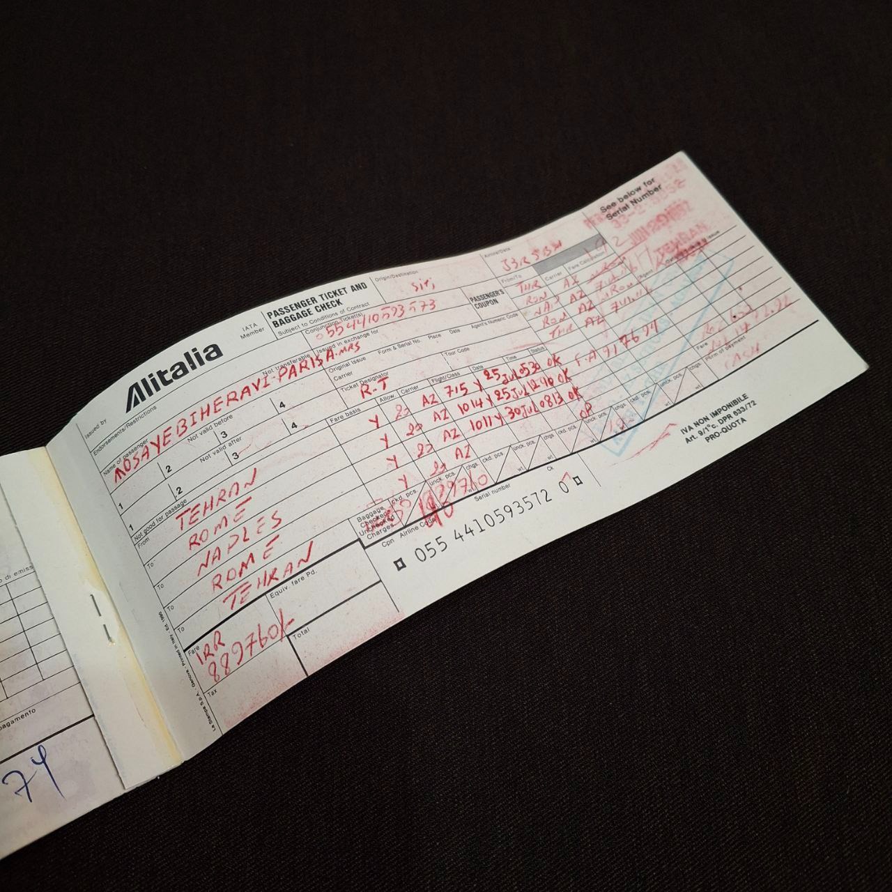 بلیط هواپیما قدیمی پرواز مستقیم تهران به رم
