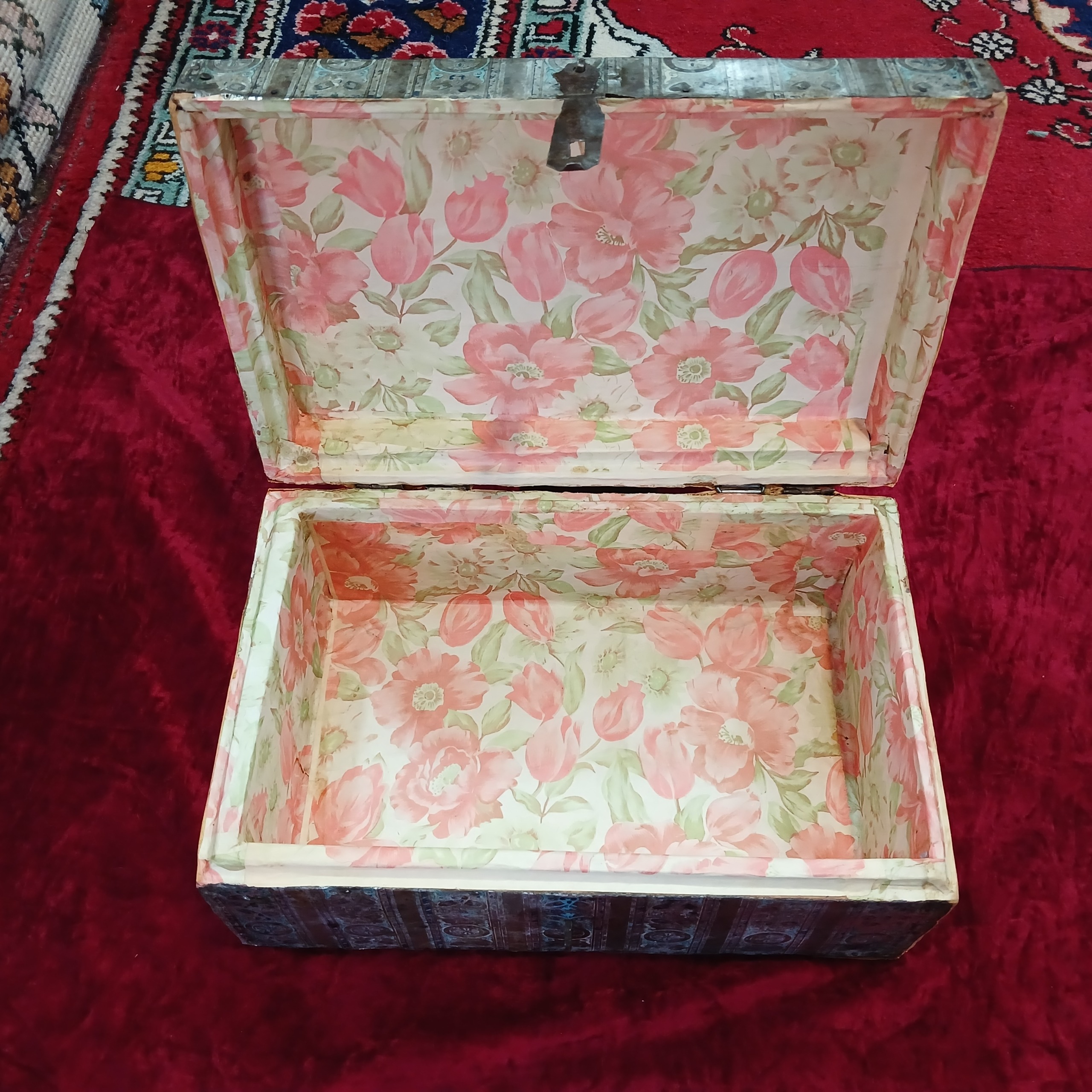 جعبه چوبی و فلزی آهنی قدیمی مال زمان پهلوی سالم و بدون ایراد قابل استفاده کلکسیونی ساخته شده از چوب و حلبی دست ساز اندازه طول 36،عرض 23 و ارتفاع 14 سانت لازم به توضیح است که کاغذهای داخل و خارج جعبه کنده شده بود بنده این کاغذها را به داخل و خارج جعبه زدم بق145یه کار مال زمان پهلوی است.