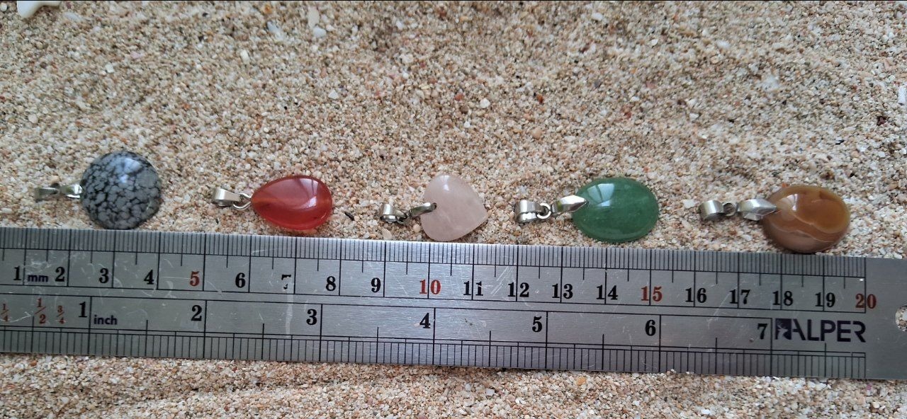طول آویز: لطفا به ابعاد و اندازه سنگها دقت بفرمایید. برای راحتی انتخاب و تصمیم گیری شما همه  سنگها روی خط کش قرار داده شده  و اندازه ها در تصویر کاملا مشخص است.