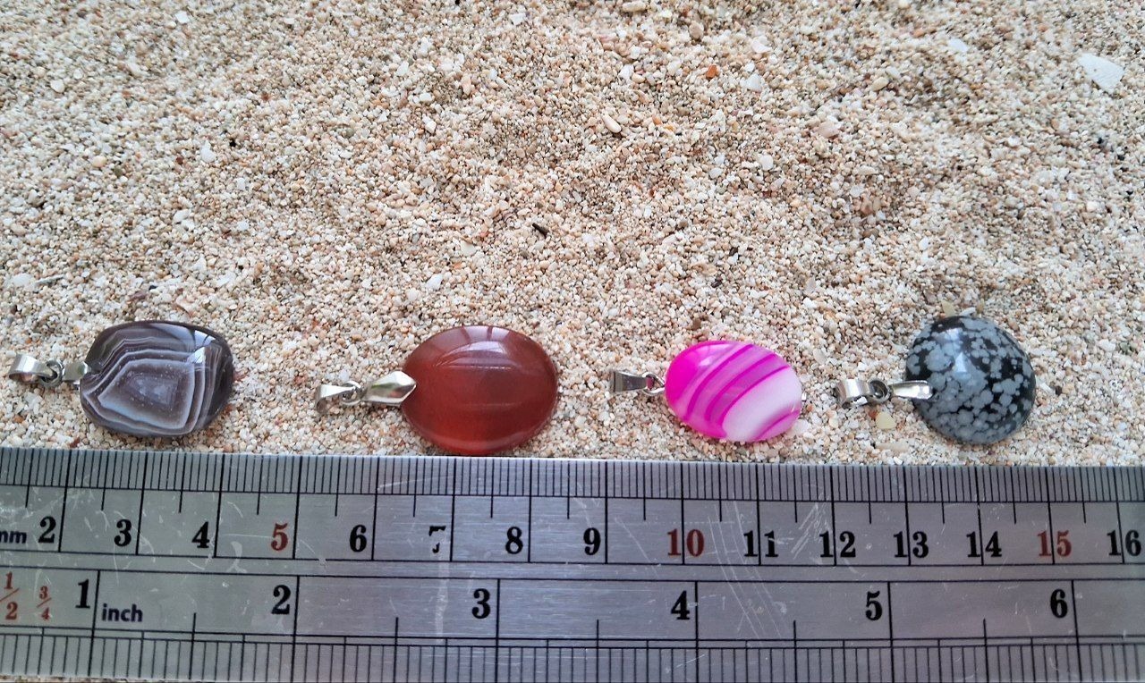 طول آویز: لطفا به ابعاد و اندازه سنگها دقت بفرمایید. برای راحتی انتخاب و تصمیم گیری شما همه سنگها روی خط کش قرار داده شده و اندازه ها در تصویر کاملا مشخص است.