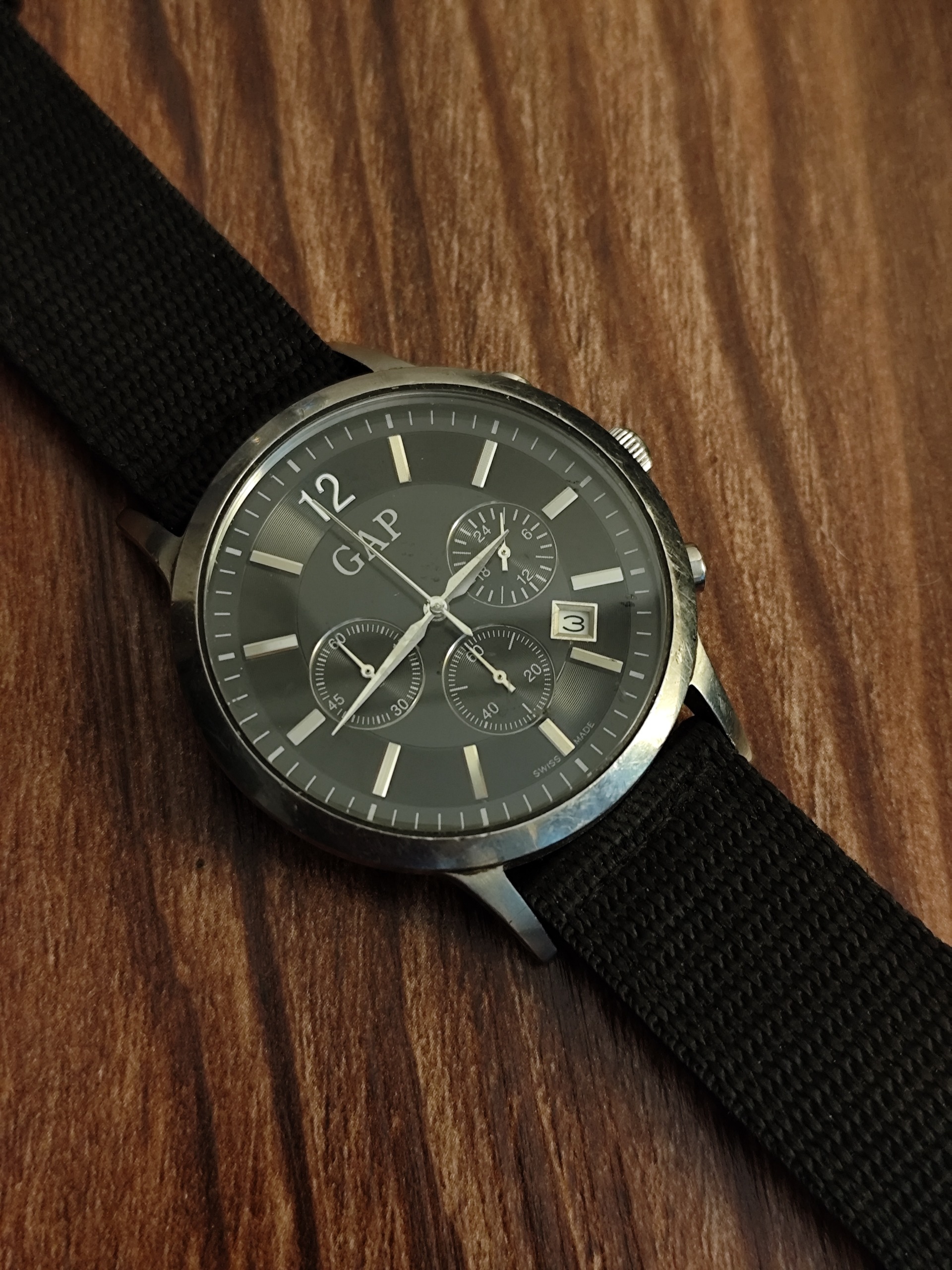 بند ساعت فلزی ست و برای تنوع بند پارچه ای استفاده شده