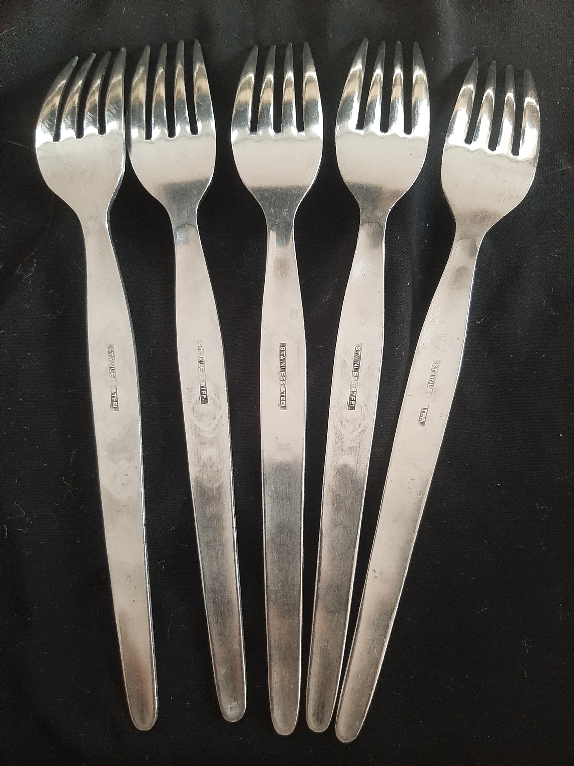 5 چنگال خاص استیل و قلم سیاه دست دوم عمر 60 یکیش لک دون دون سیاه و یکیش یک لک سیاه دارد