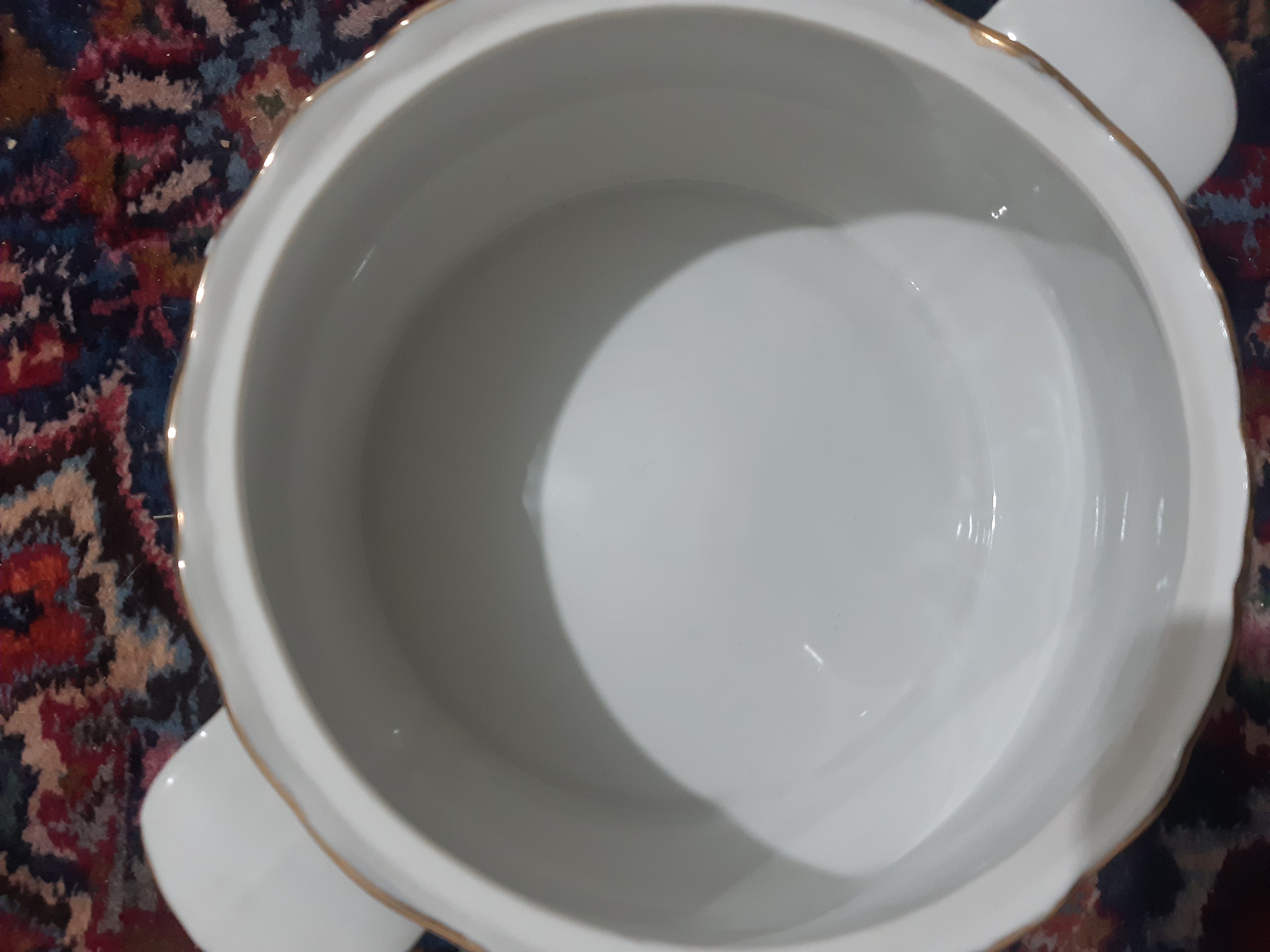 یک عدد سوپ خوری چینی گل سرخ قدیمی کاملا نو در قوطی هست کاملا سالم