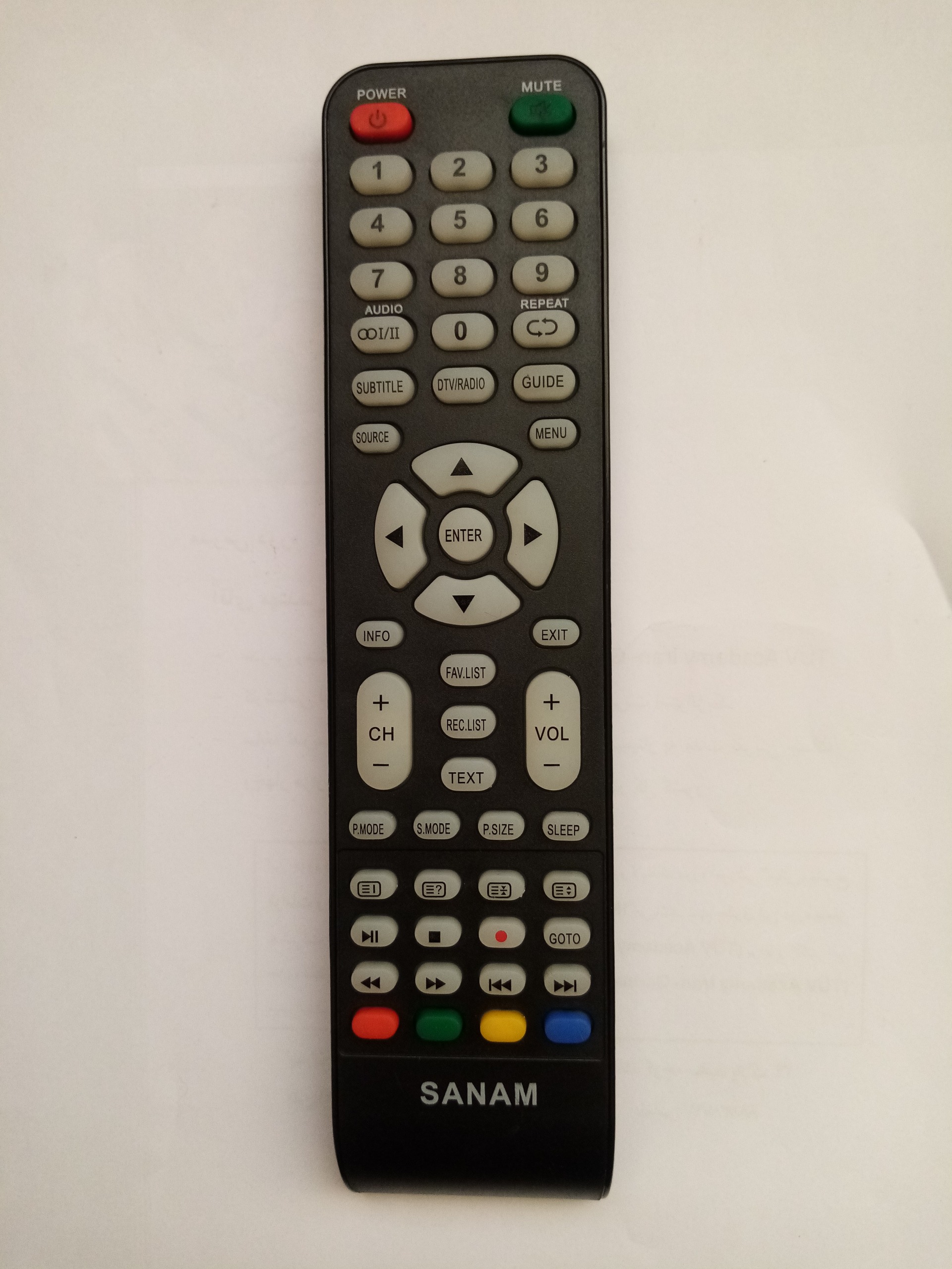 یک عدد ریموت کنترل تلویزیون صنام مدل 2212
