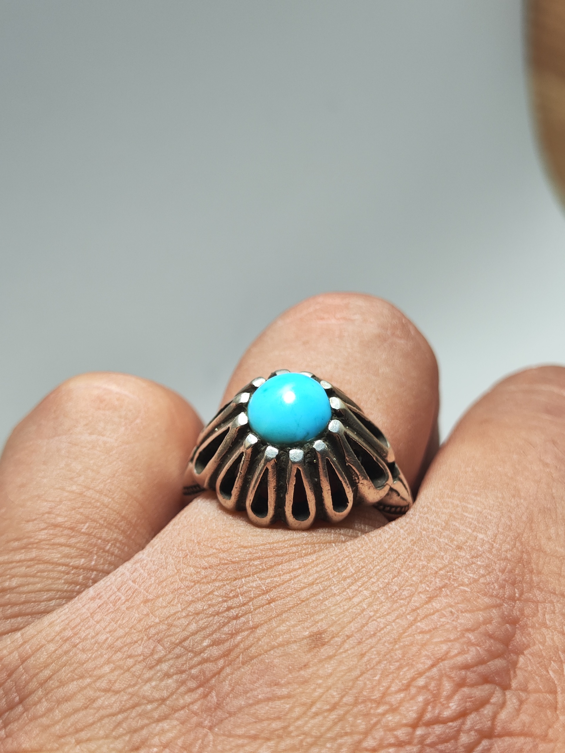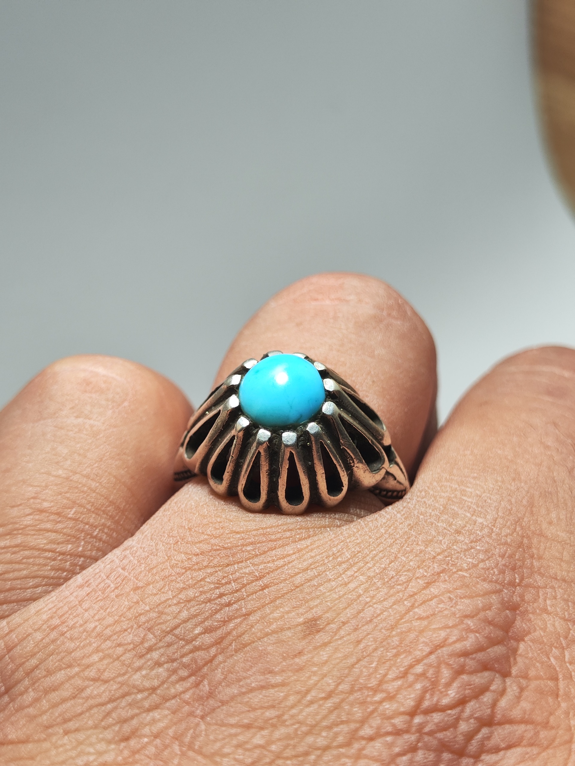 انگشتر نقره با نگین فیروزه عجمی نیشابوری پاک