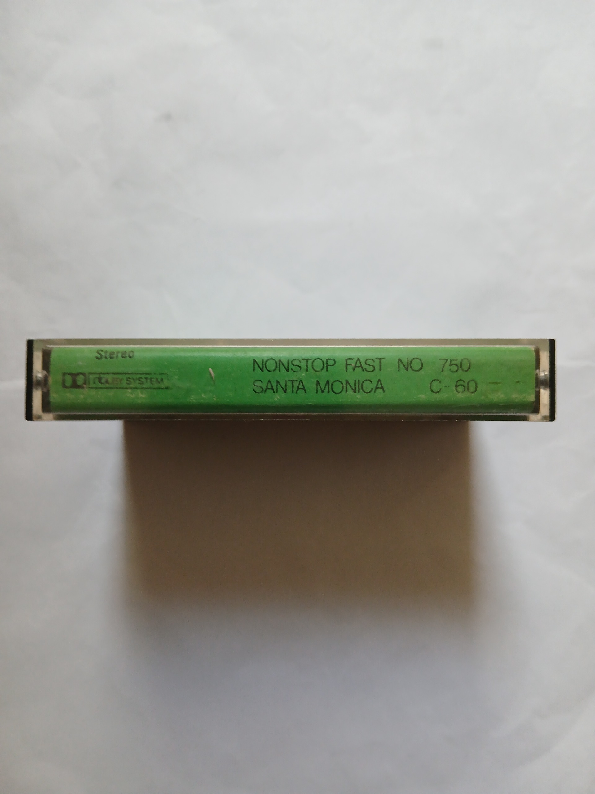 نوار اورجینال " NON STOP FAST NO.750 1979 " با اسم آلبوم ( SANTA MONICA ) با سبکهای موسیقی شاد Electronic/Disco که شامل مجموعه ترانه های شاد بیاد ماندنی سال 1979 با کیفیت صدای عالی می باشد که بوسیله استریو تانگو ( پیش از انقلاب ) ضبط و تولید شده . نوار تمیز و کاملا سالم است .