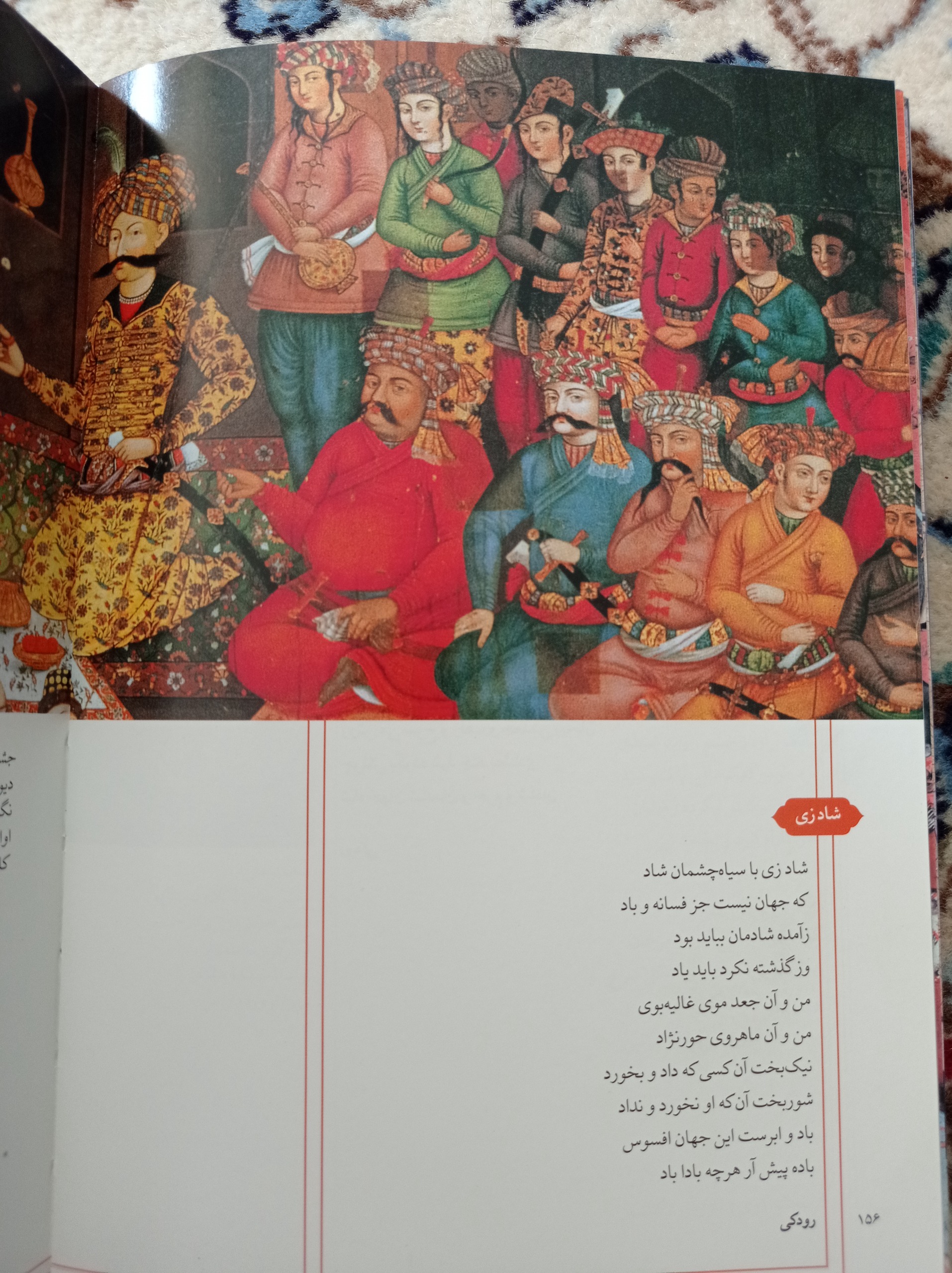 کتاب بر روی کاغذ ضخیم گلاسه و جلد ضخیم و با تابلوهای متعدد رنگی چاپ شده و گزیده اشعار است .