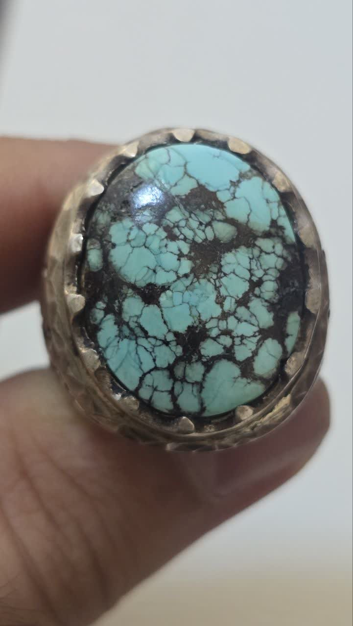 انگشتر فیروزه مغز سنگ شجر عنکبوتی نیشابور بدون احیا بشرط