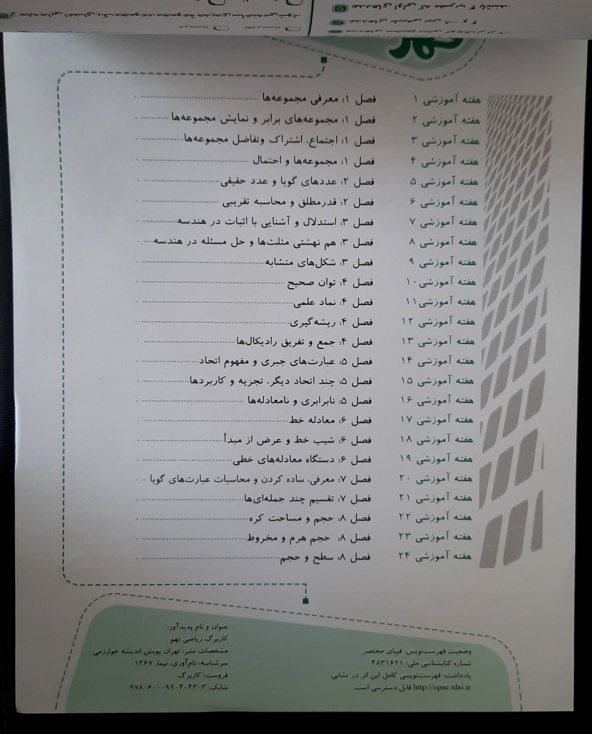 کاربرگ ریاضی پایۀ نهم به همراه سمپل کاربرگ دروس