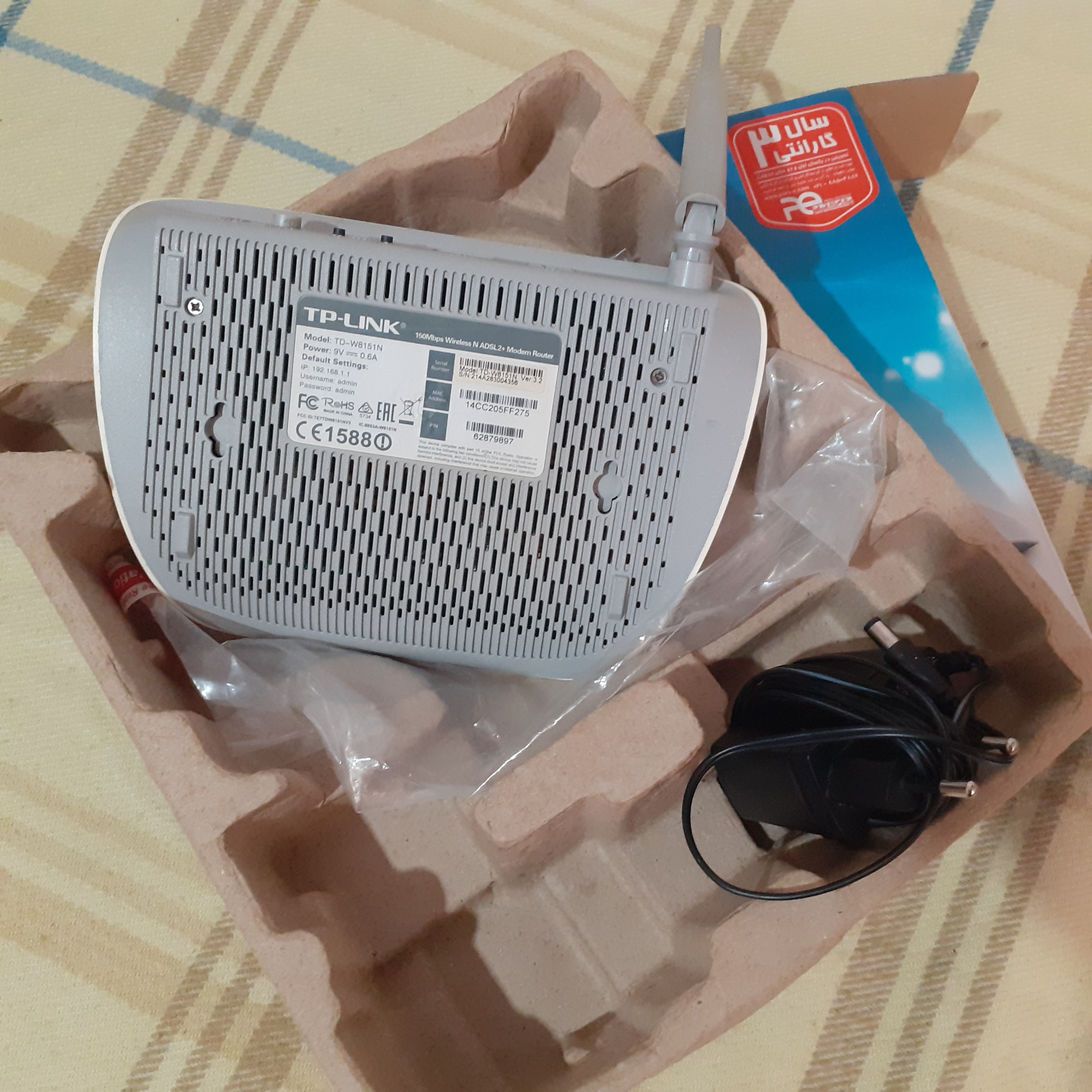 مودم به همراه جعبه و ادابتور