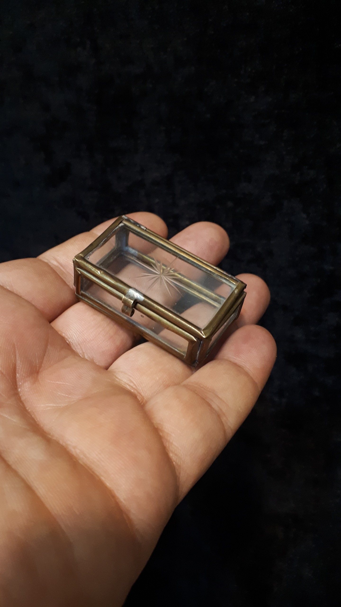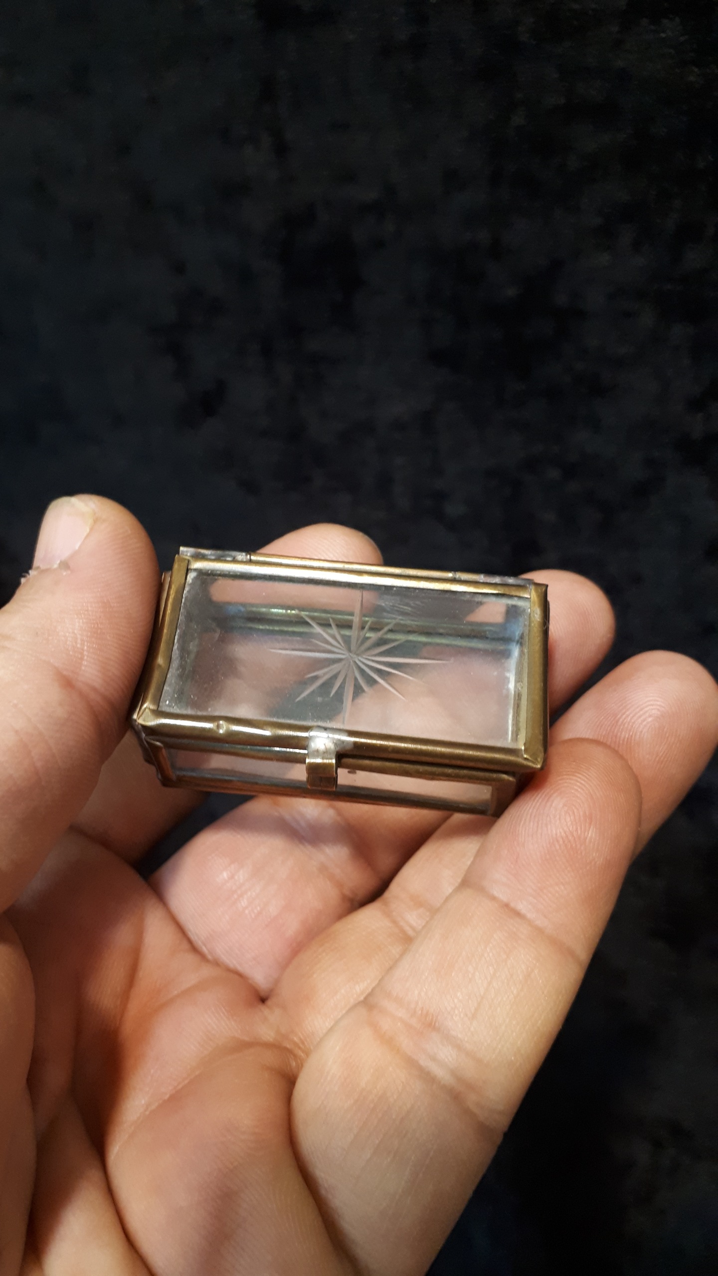 جعبه شیشه ای تراش دار کهنه بکر و خاص و قدمت دار