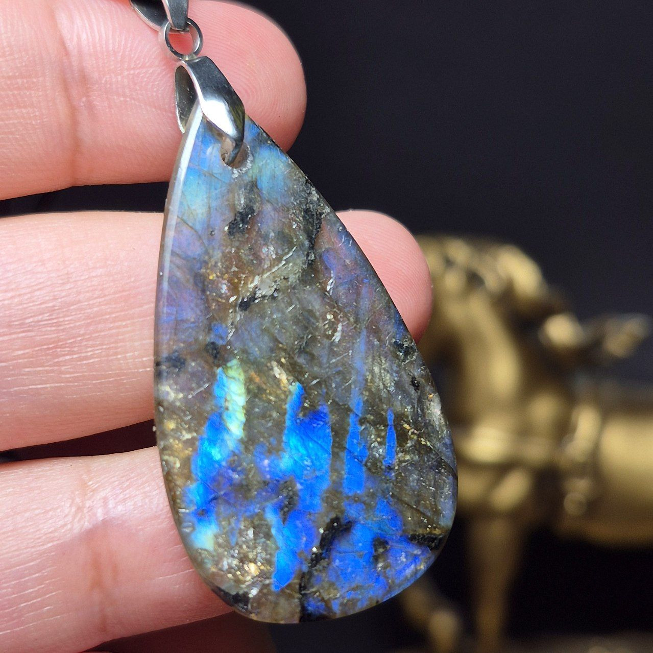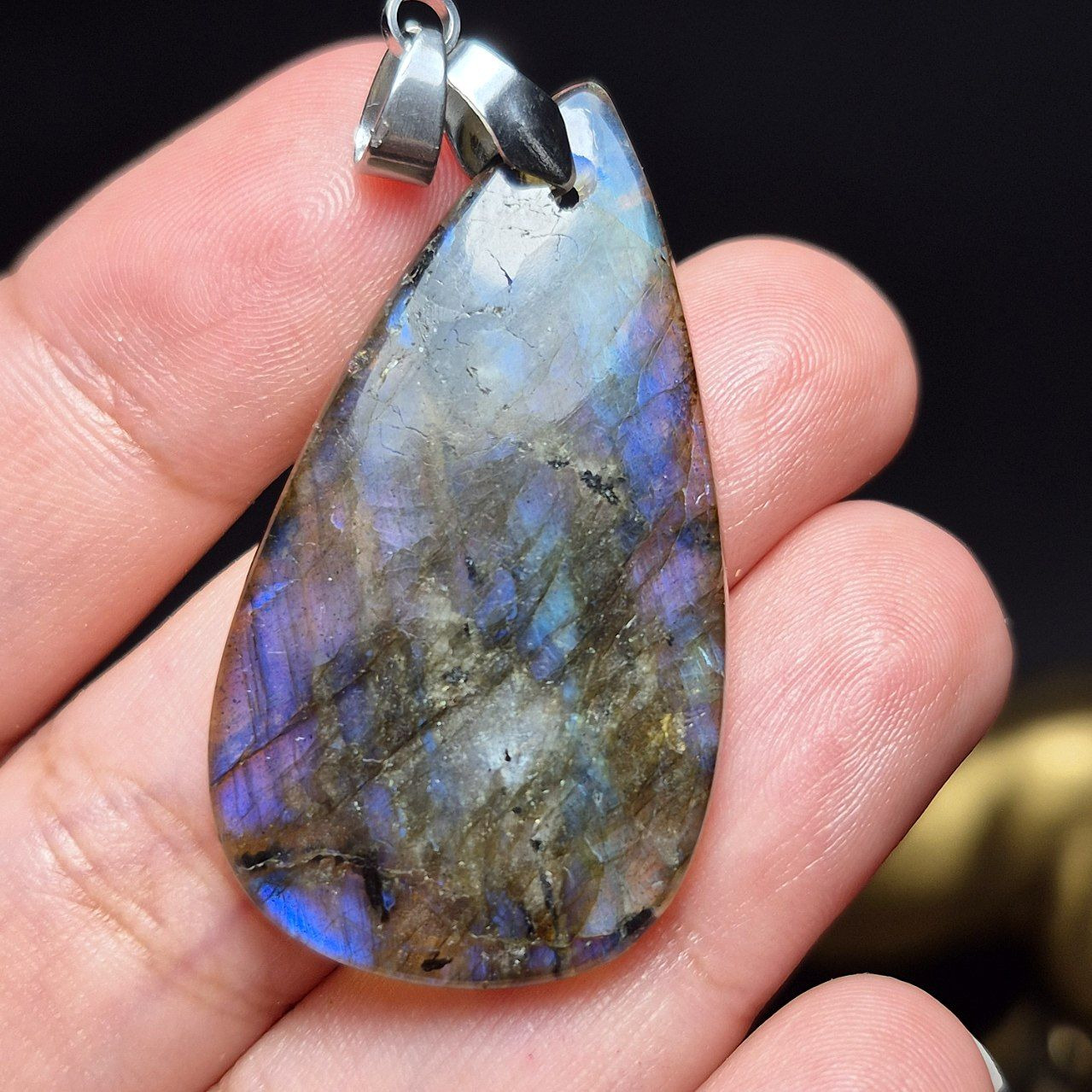 آویز گردنبند سنگ لابرادوریت معدنی کد Z7114